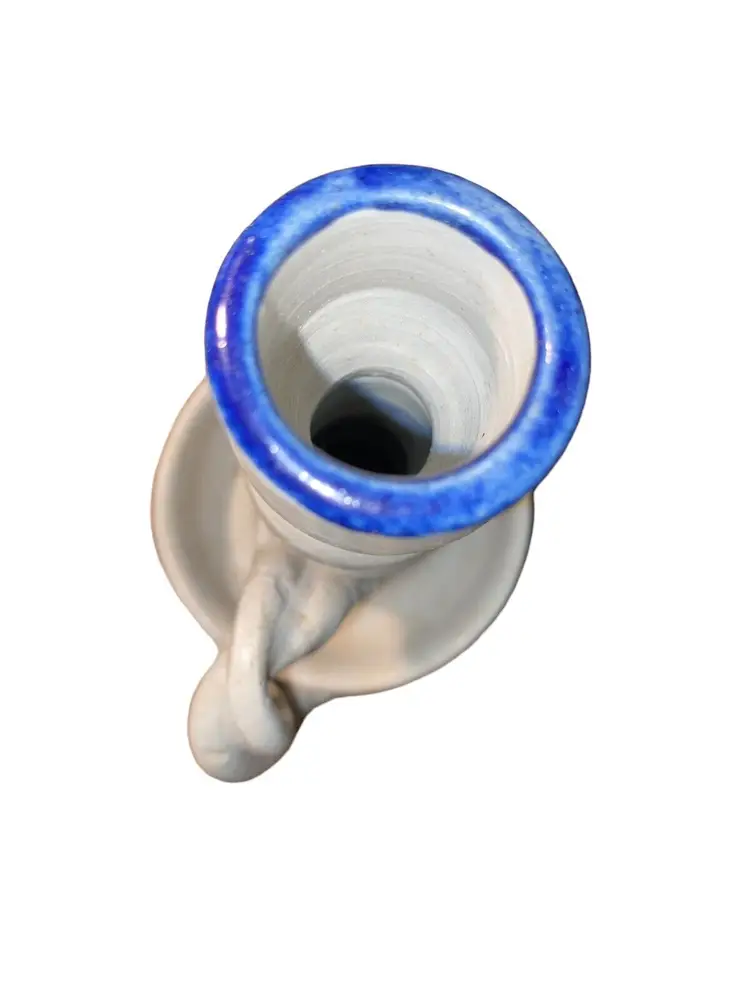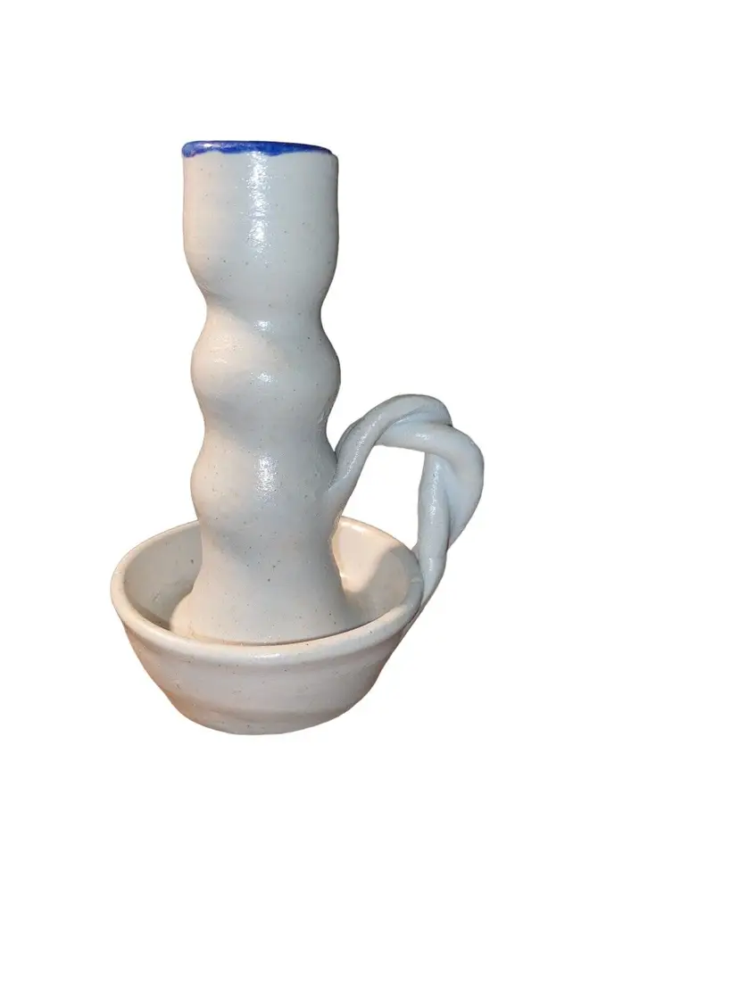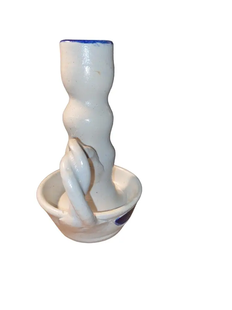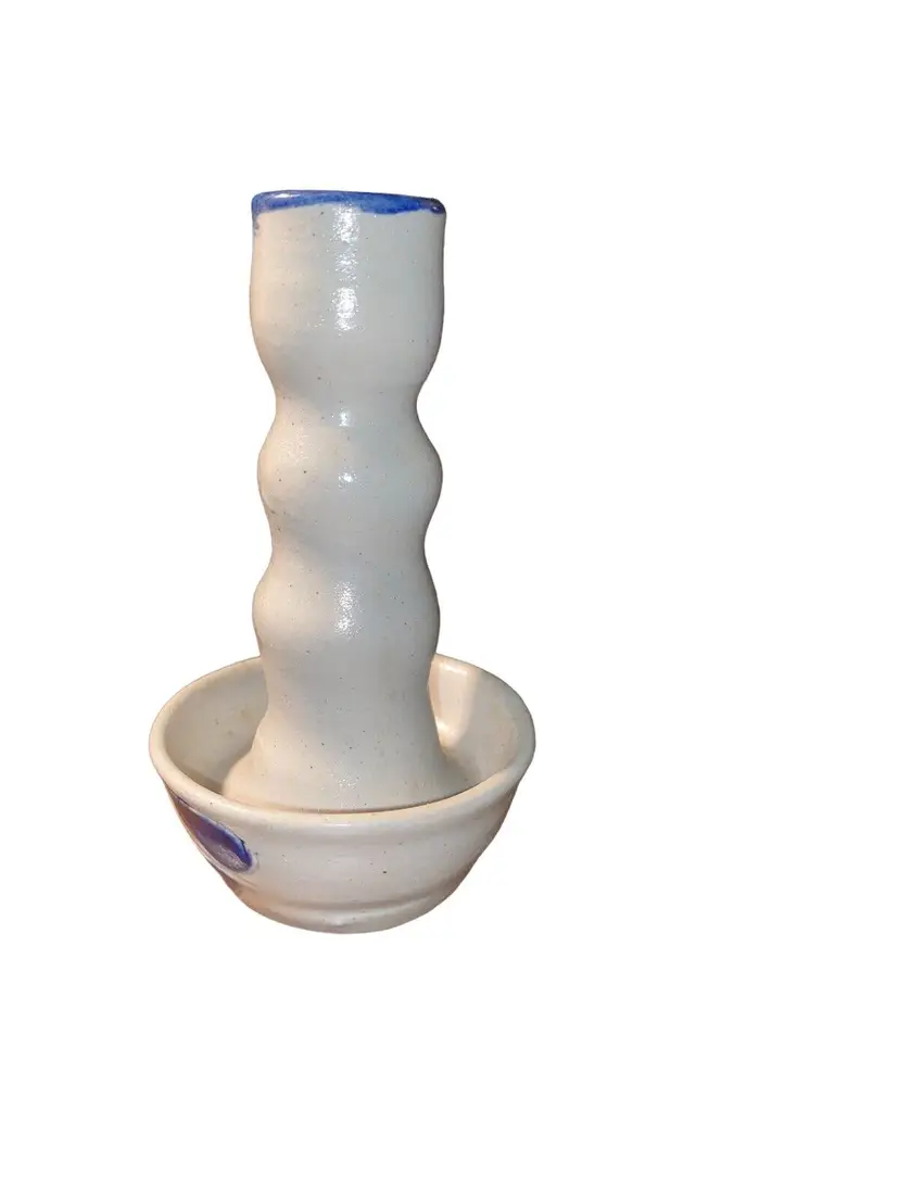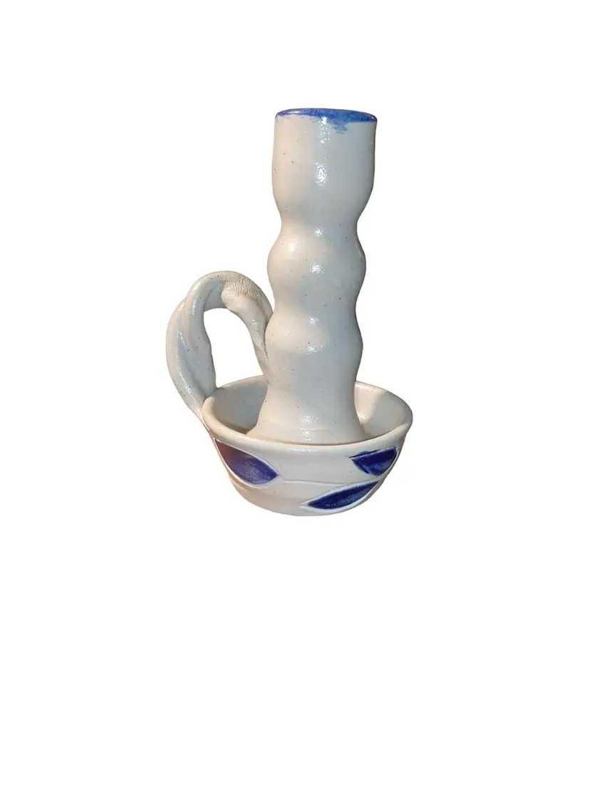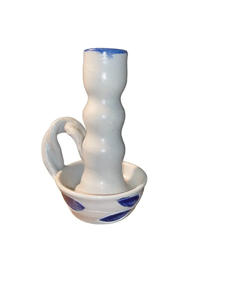 Vintage Williamsburg Pottery Cobalt Blue Leaf Stoneware Handle Candle Holder