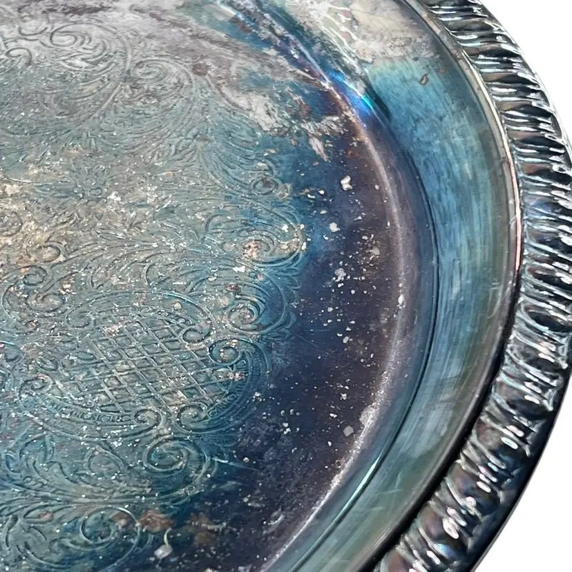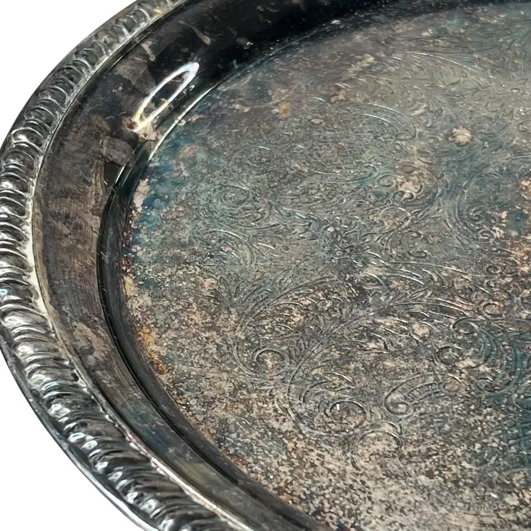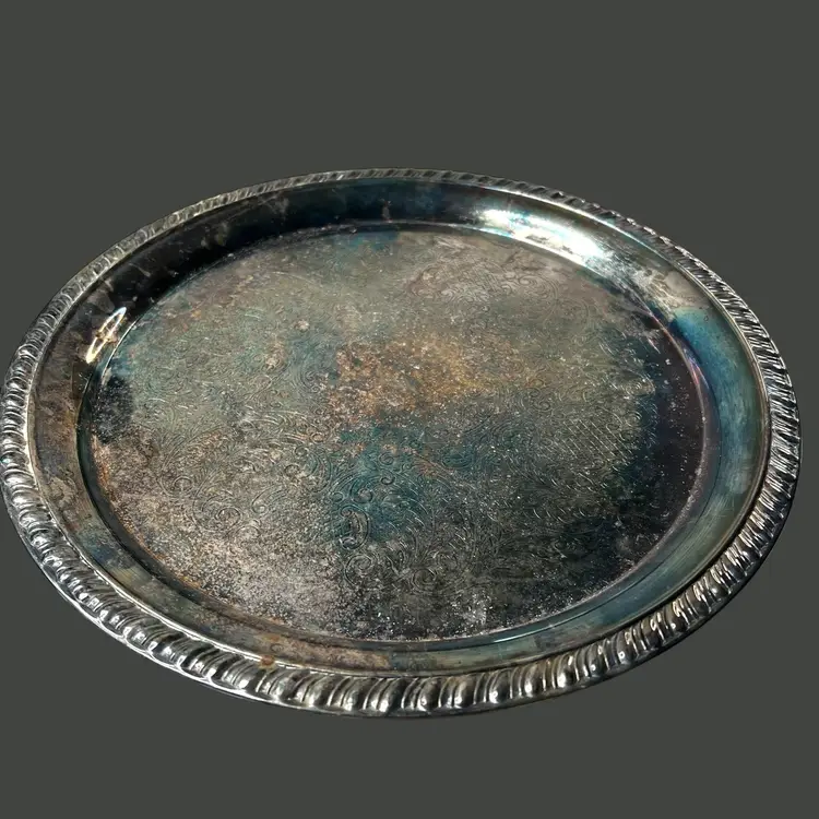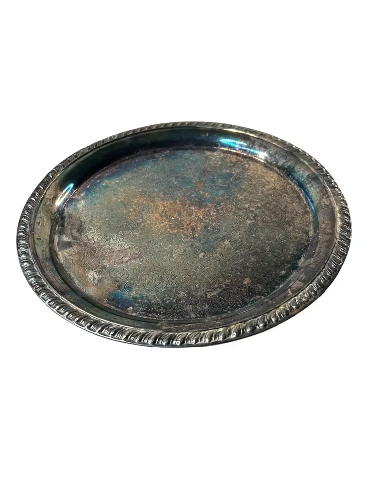 028 Vintage Wm Rogers 12.25" Silver Plated Floral 12.25" Tray