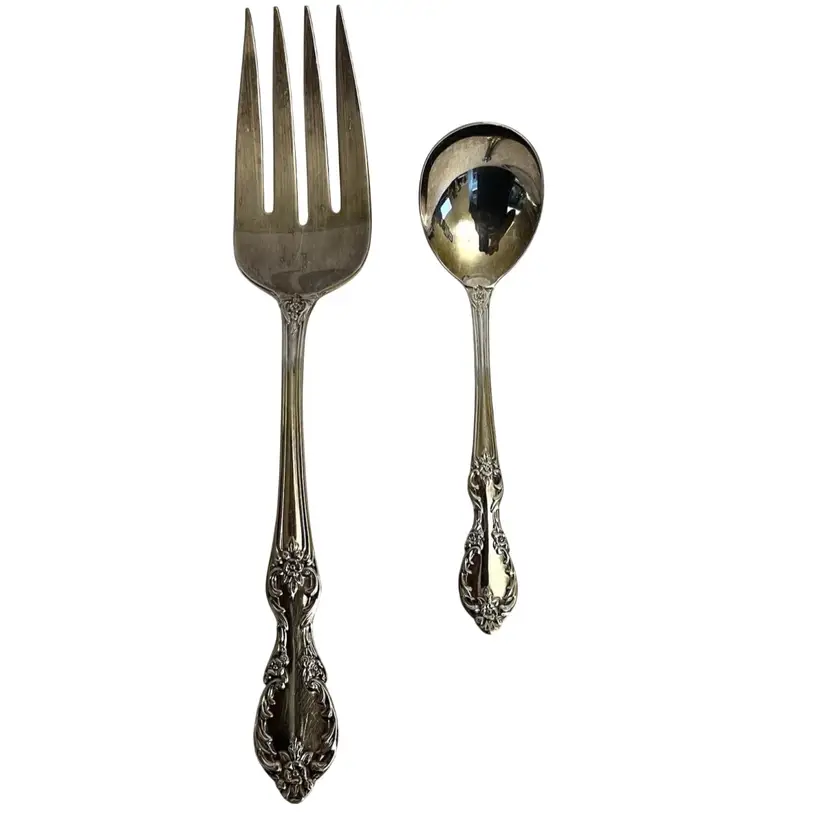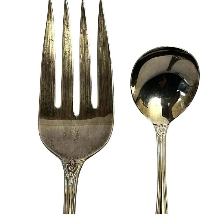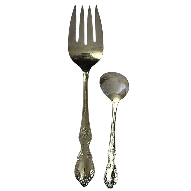 Silver Plated Grand Elegance/ Southern Manor Meat Fork 8 7/8" Round Silver Plated Bouillon Soup Spoon 5 1/2"