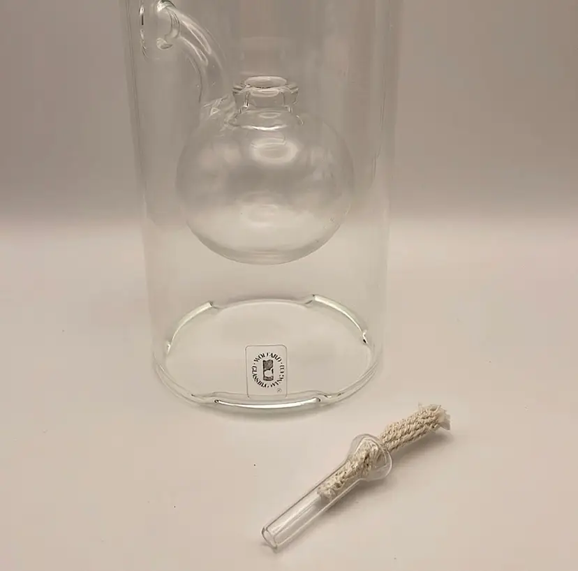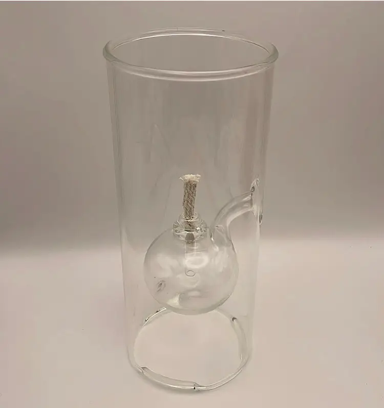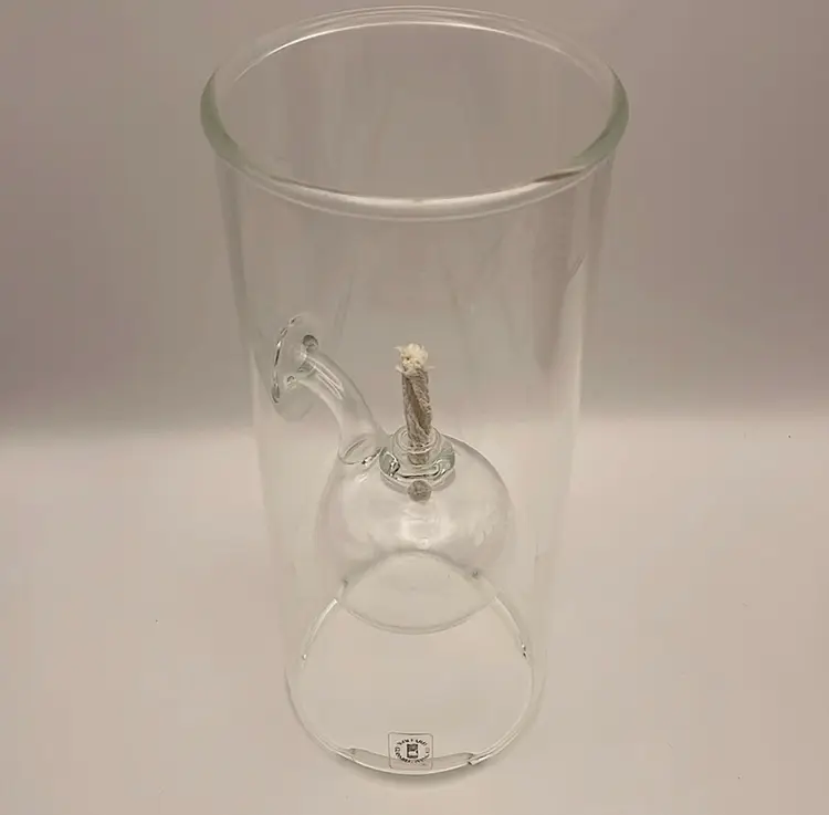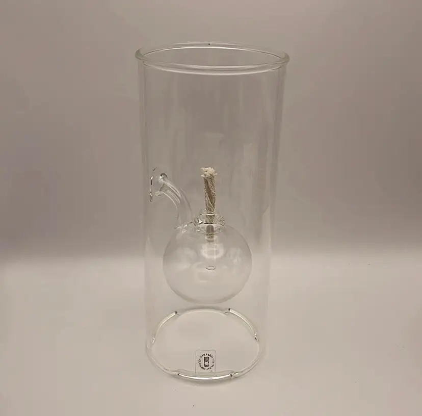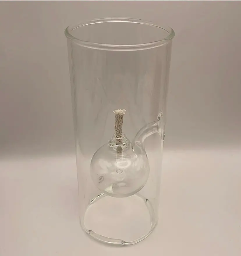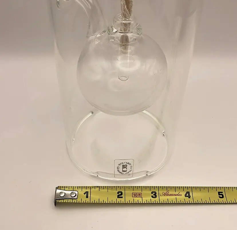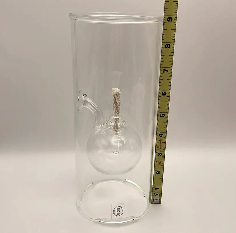 Vintage, Wolfard Glass Blowing Company, Hand Blown, 9” Glass Oil Lamp with Unused Wick Please see pictures for measurements.