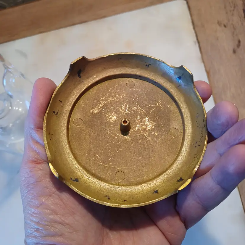 The lamp is preowned and in very good condition, with no visible flaws to the glass. The brass base shows only slight wear consistent with age and normal handling. No wick is included, allowing the next owner to install a fresh wick of their preference.