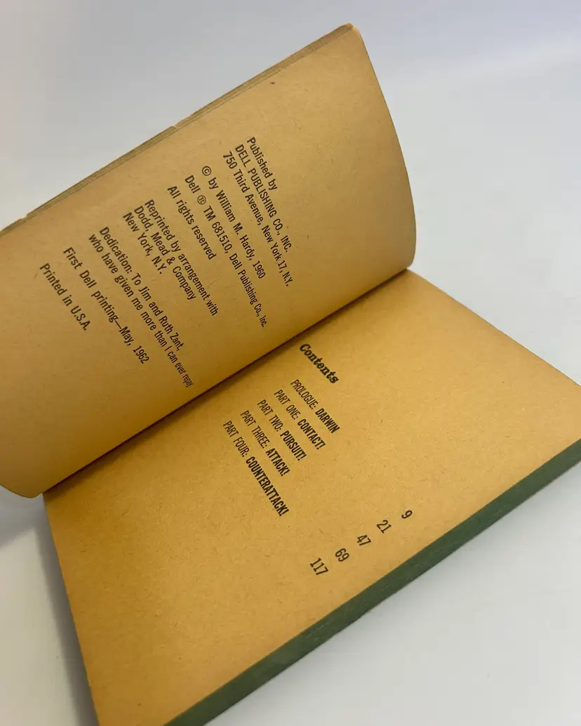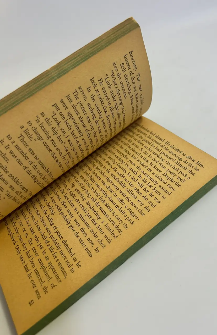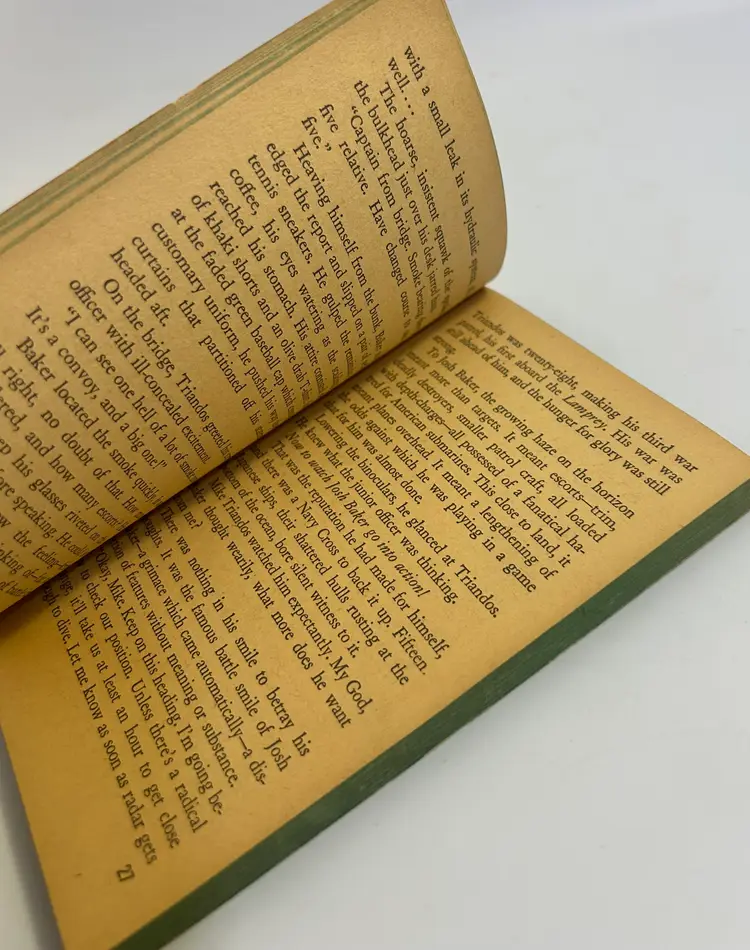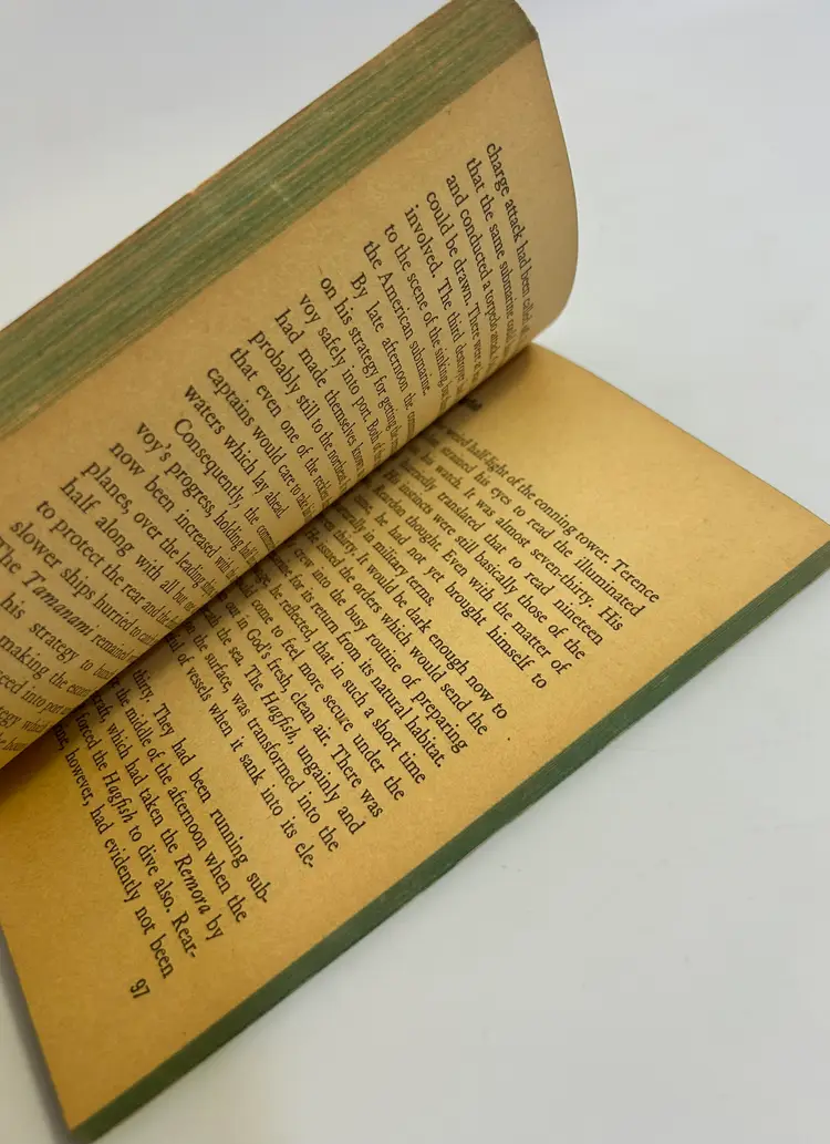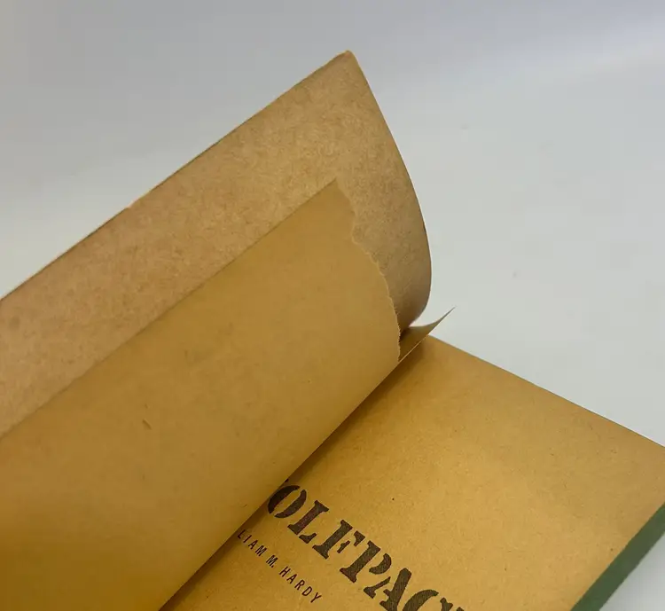 Common wear on cover, discoloration wear on edges and creases on and near spine. First page has a corner torn off, see last photo. Pages have common yellowing due to age. Please look over and enlarge photos for overall condition.