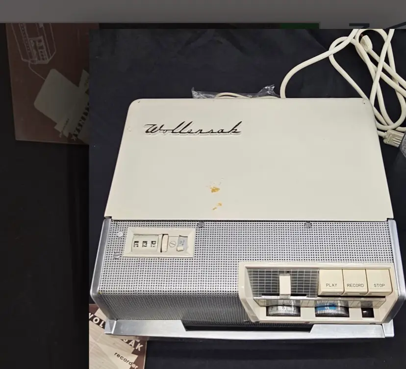 1960s era Wollensak Tape Recorder. Comes with original paperwork, cords and cover. Still functional, power tested & verified. See pictures for details.