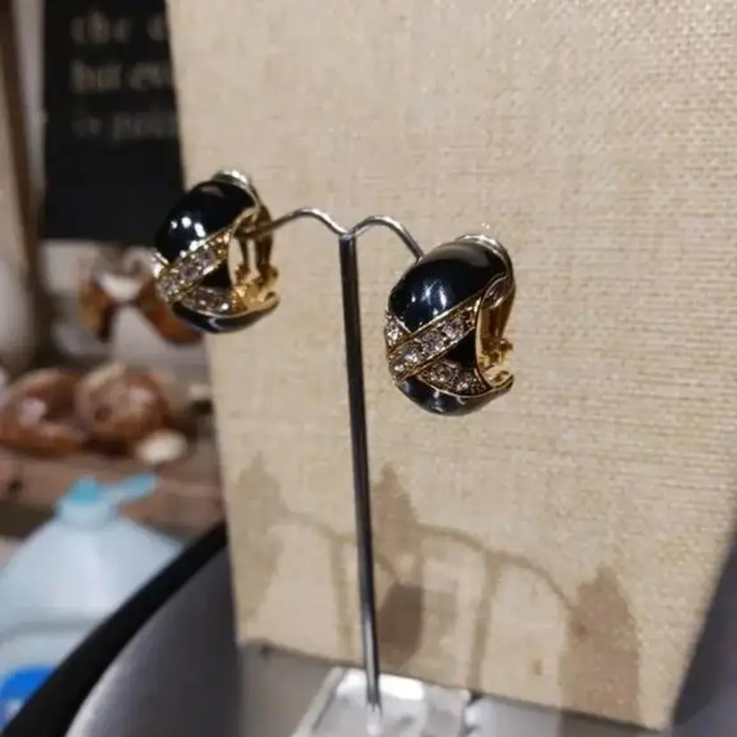 Vintage Women's Gold Tone Clip On Earrings Lot. Black Enamel, Faux Pearl. Pre-owned, Great condition.