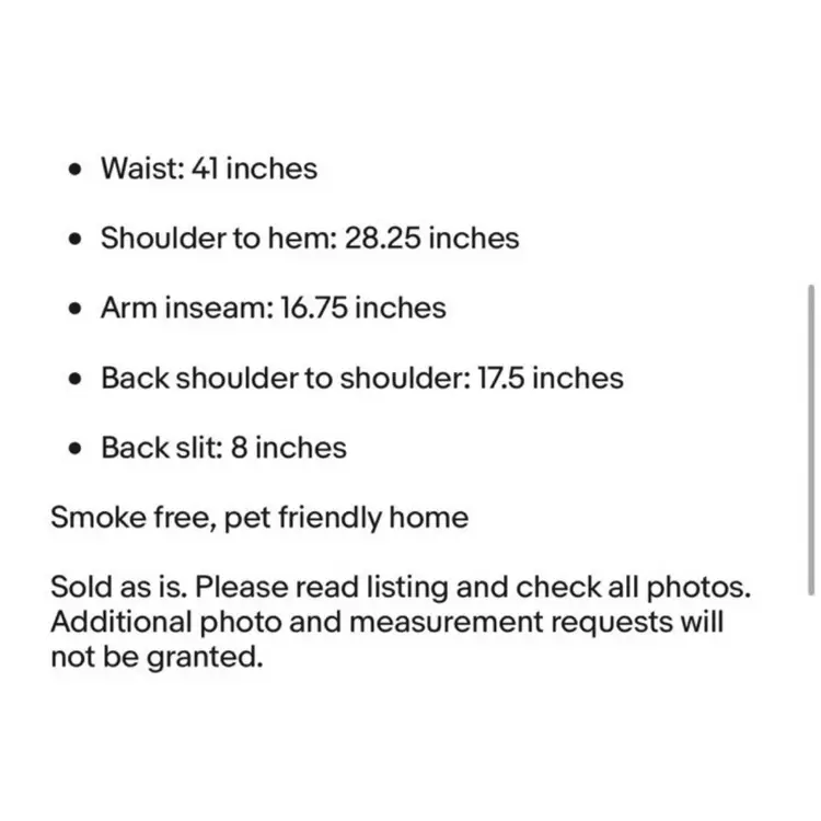 Sold as is. Please read listing and check all photos. Additional photo and measurement requests will not be granted.