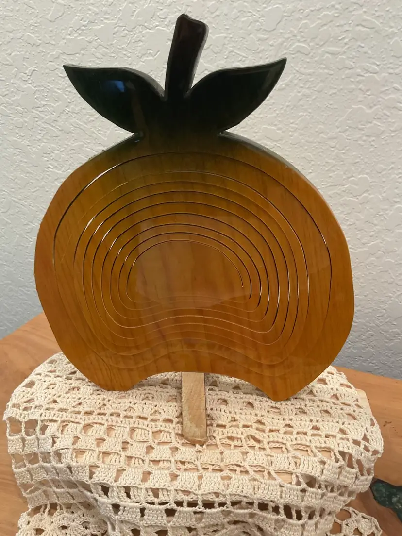 Vintage collapsible wood apple bowl from Mexico. Made of wood. Maker Equinoccio.