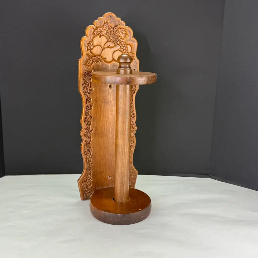 Vintage Wood Paper Towel Holder Wall Mount With Embossed Fruit Design