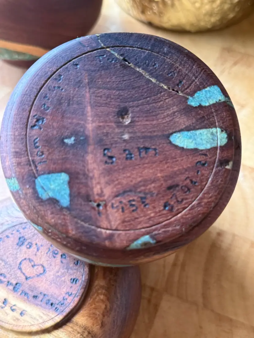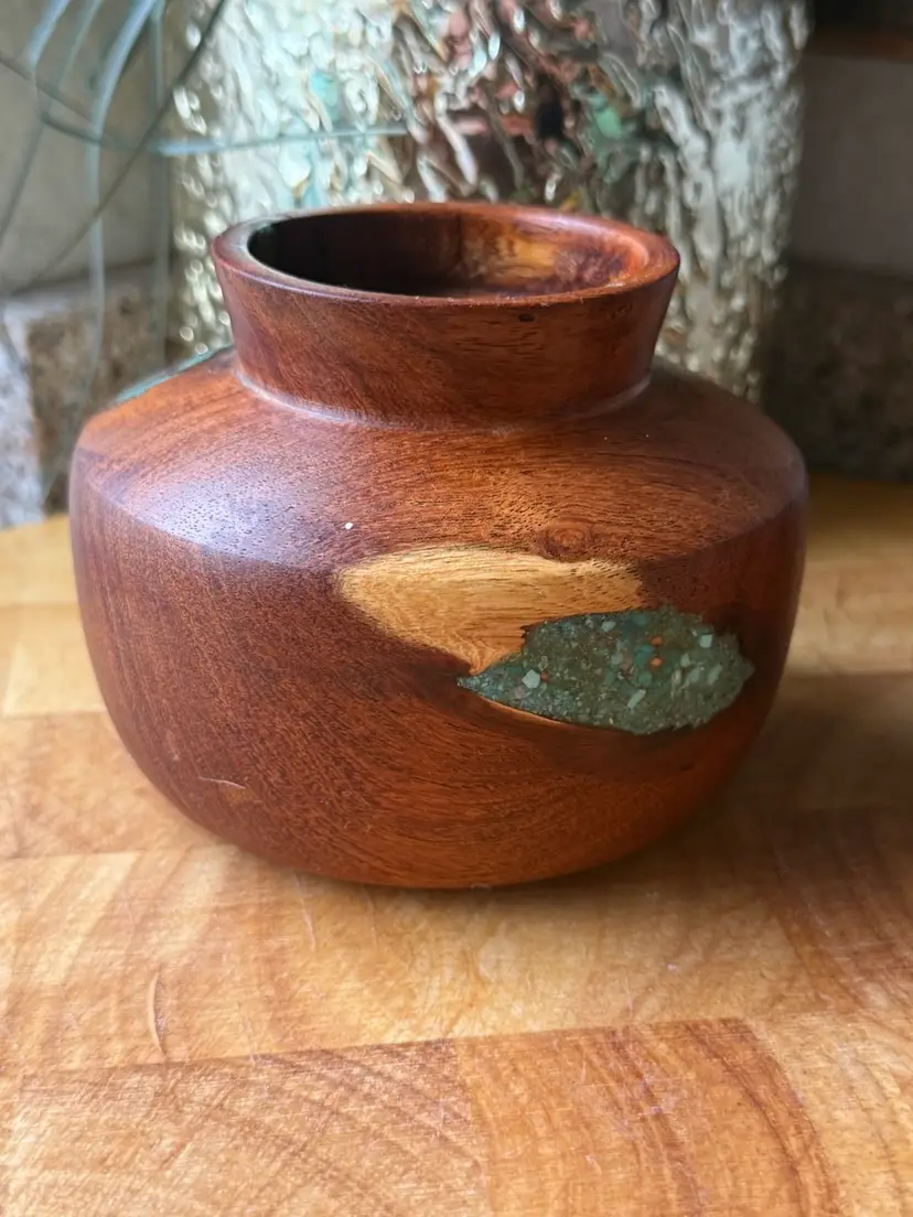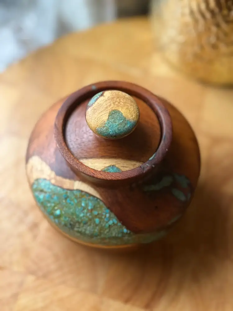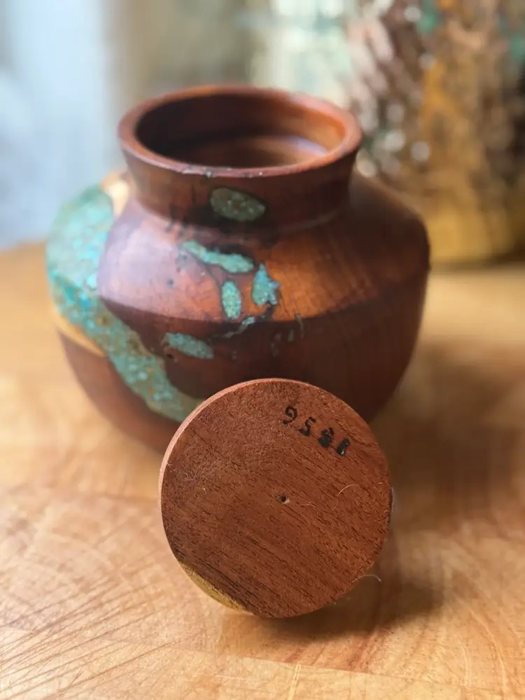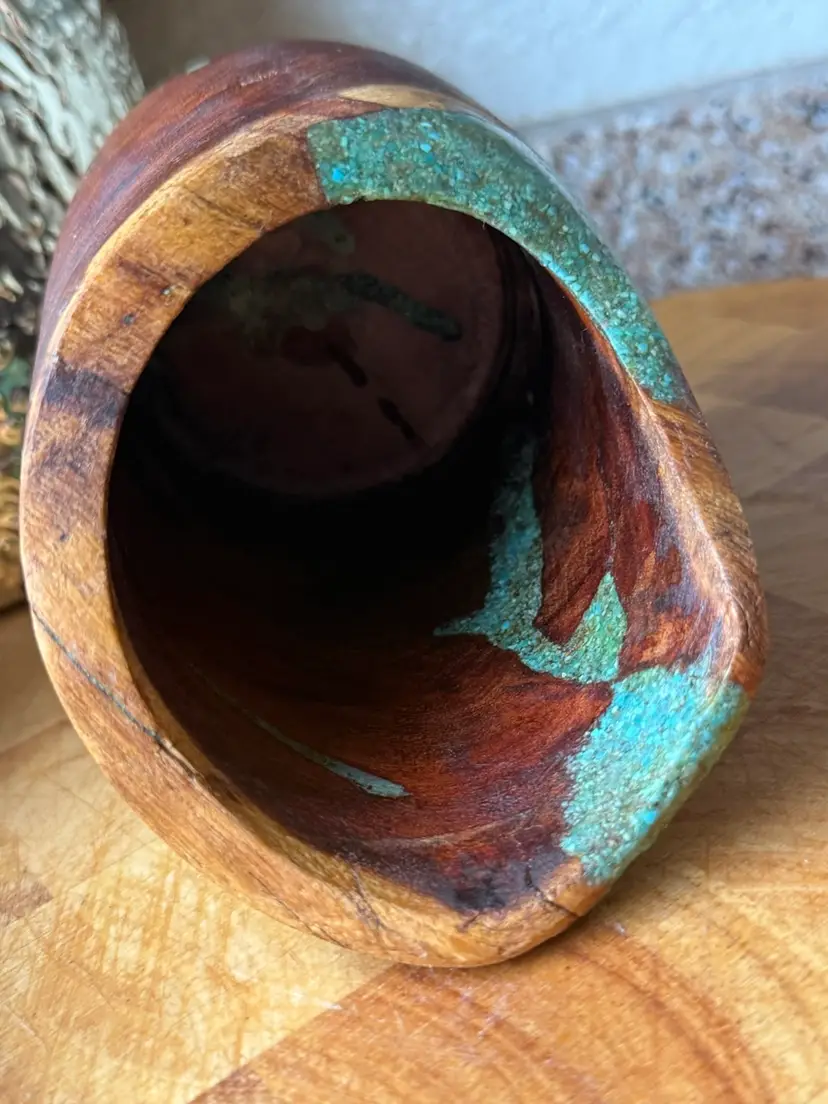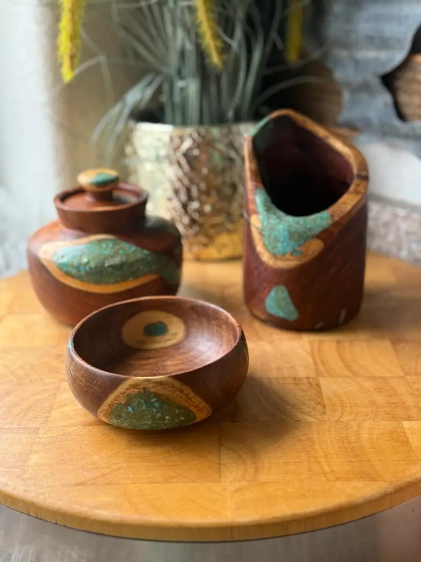 Desert Earth Spirits Shaped by hand where wood met dust and turquoise met sky, these vessels were never empty. It’s said that small desert spirits found their way inside long ago, settling into the grain where time moves slowly and gently.