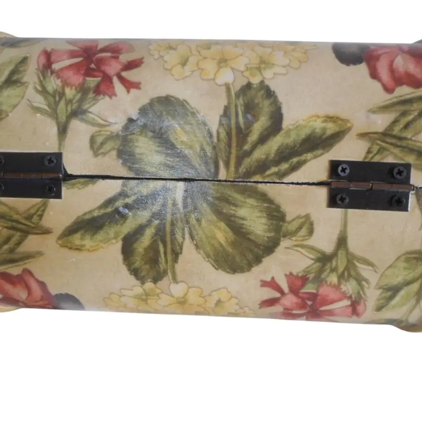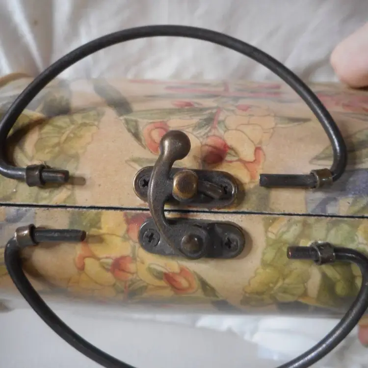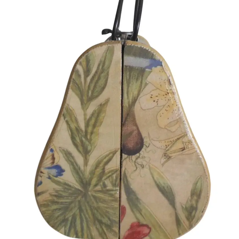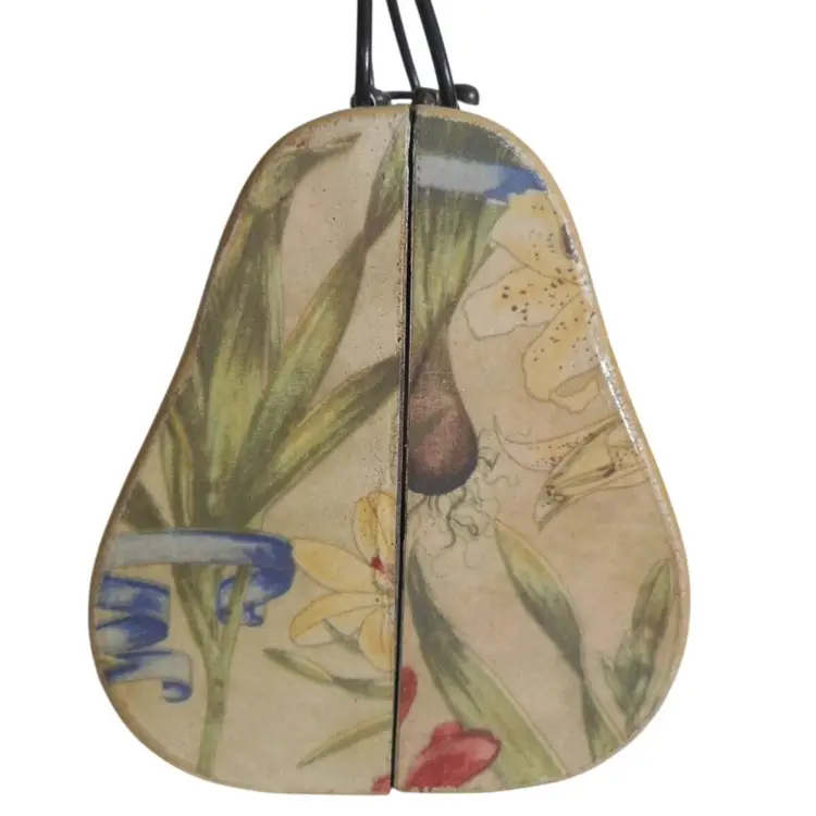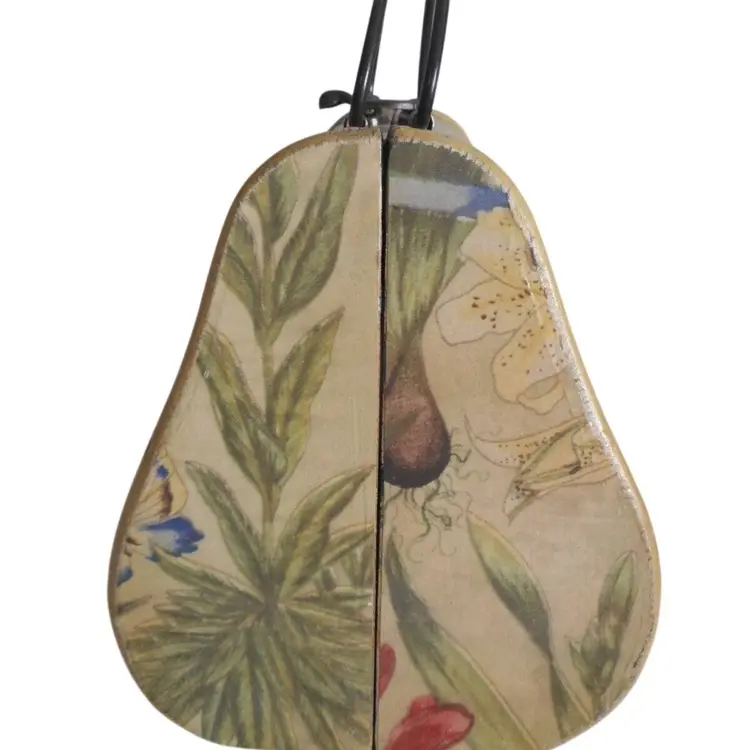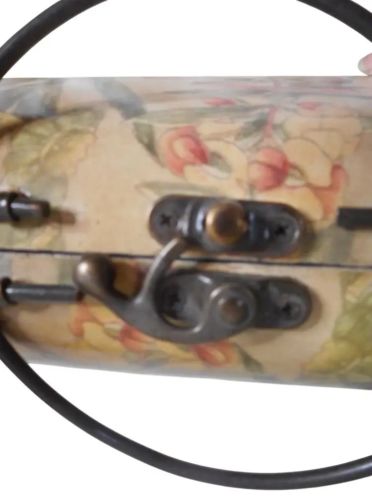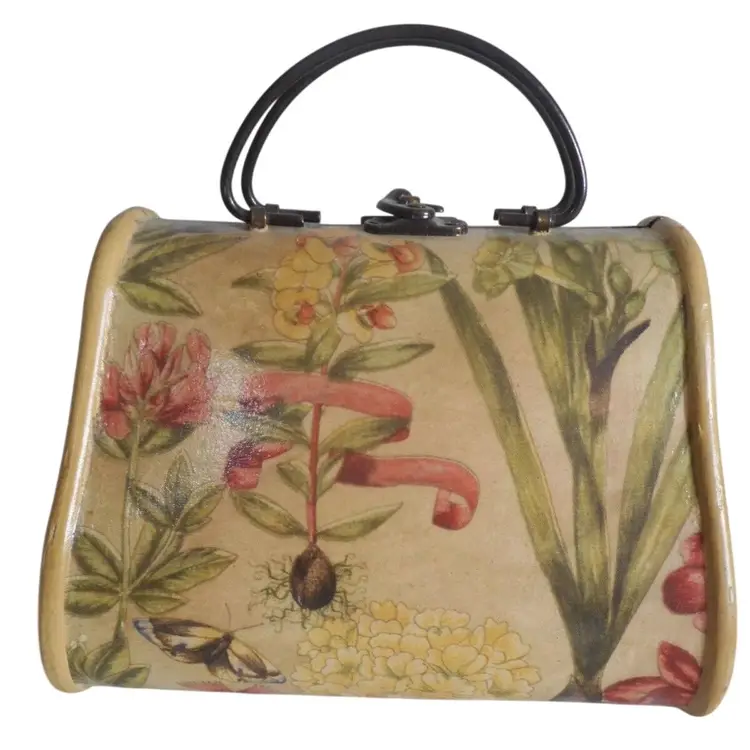 Vintage Wooden Floral Handbag Purse - Estate Find Beige Green Pink