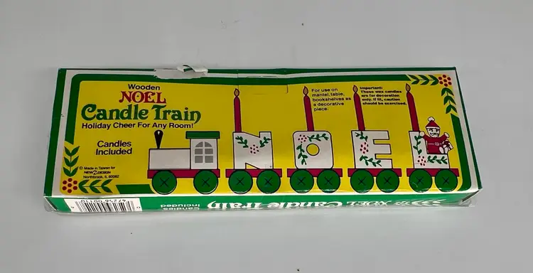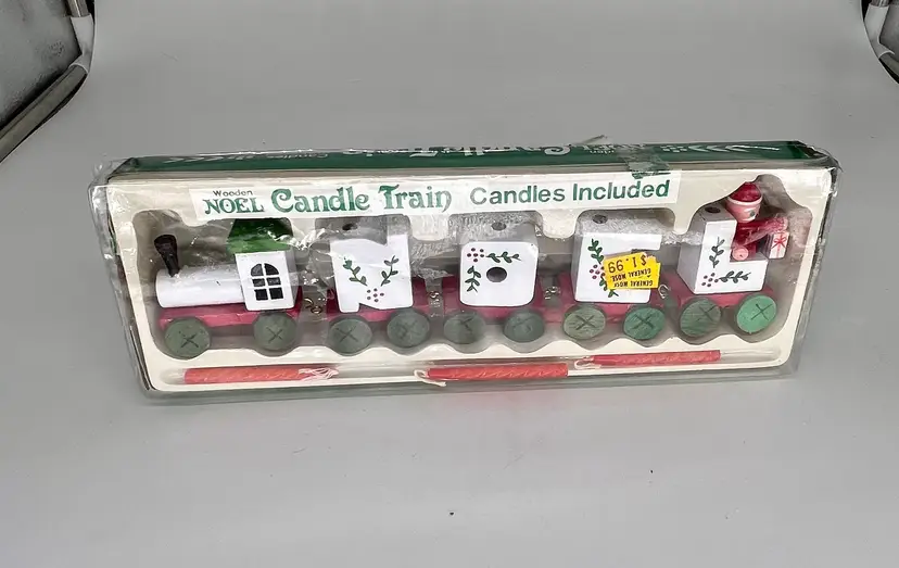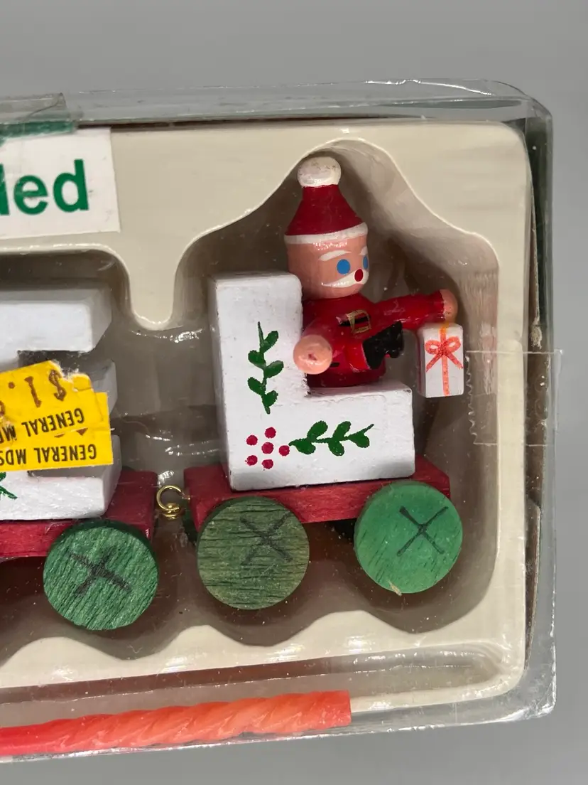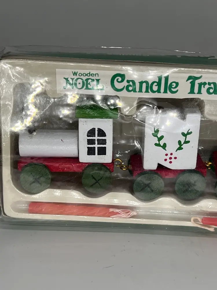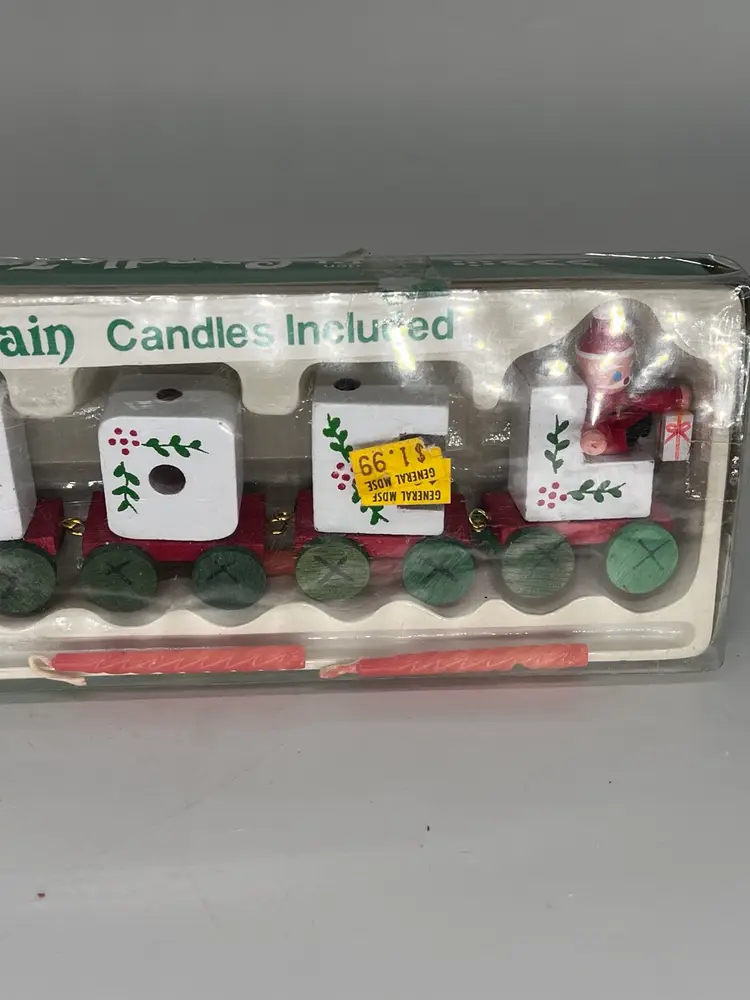 Delightful kitschy vintage wooden Noel candle train driven by Santa with all four candles 10”