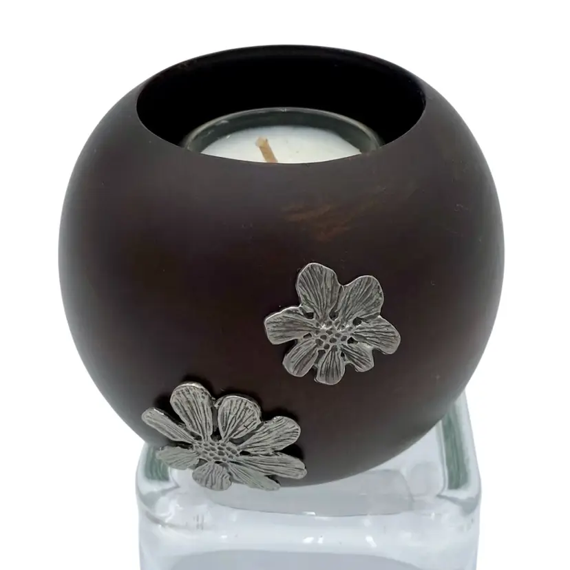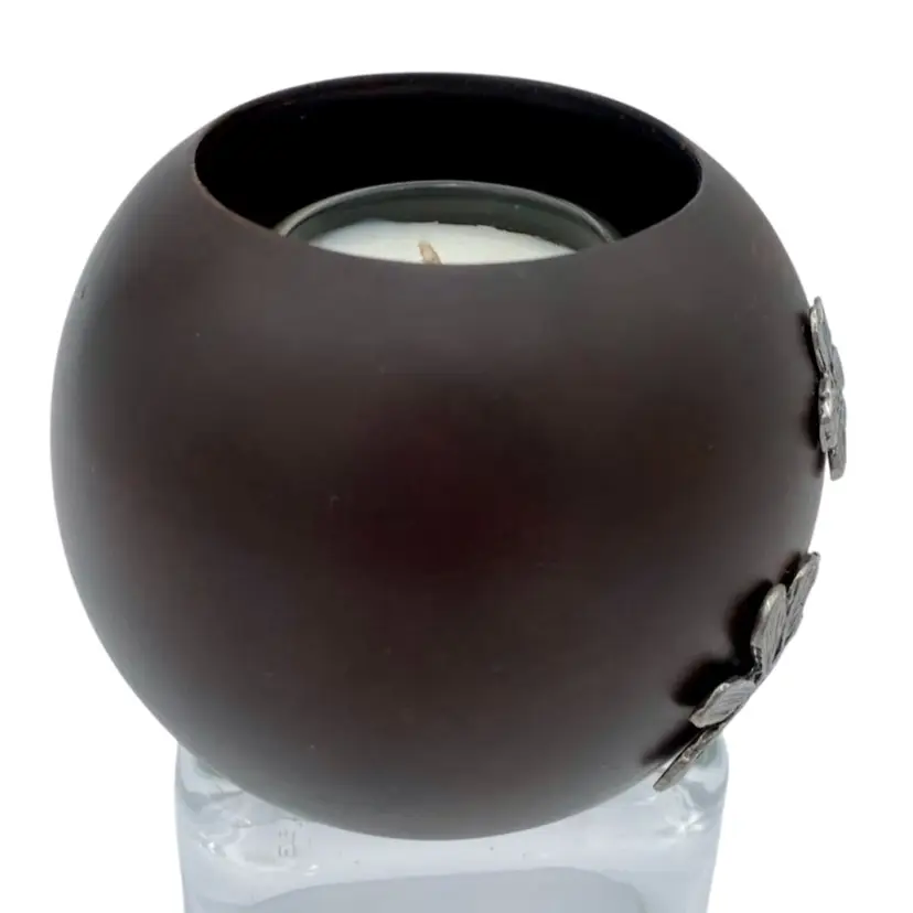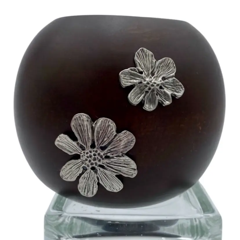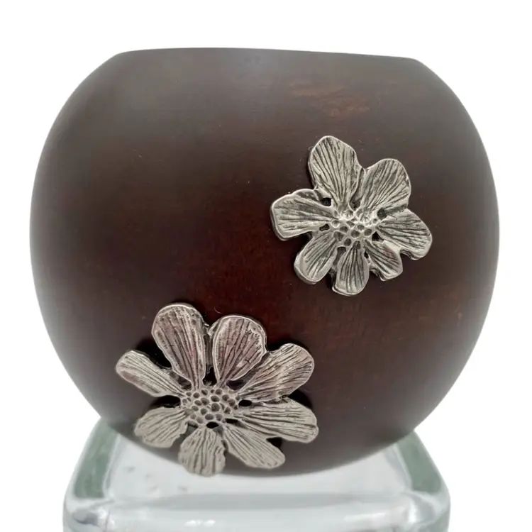 Add a touch of vintage charm to any room with this beautiful candle holder. Crafted with wood and featuring silver flower appliques, this round candle holder is suitable for all occasions and fits perfectly in any room. Measuring 3.5 inches in height and 4 inches in width, it is easy to use and care for, just clean with a damp cloth. Candle included.