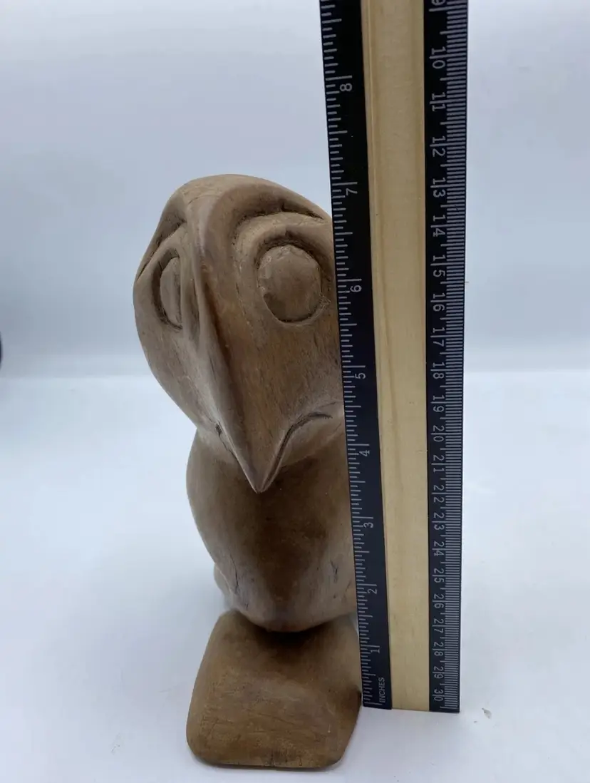 Wooden owl handcarved in stand folk art zimbabwe.An estate piece and we were told Zimbabwe but we can’t truly confirm. It is in excellent condition accompanying photos have exact measurements.