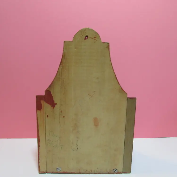 This lovely piece has some wear, but still a great piece to use and display. The shelf is about 8 1/2" x 6" x 3". This is shipped from a smoke free home. Thanks for looking!