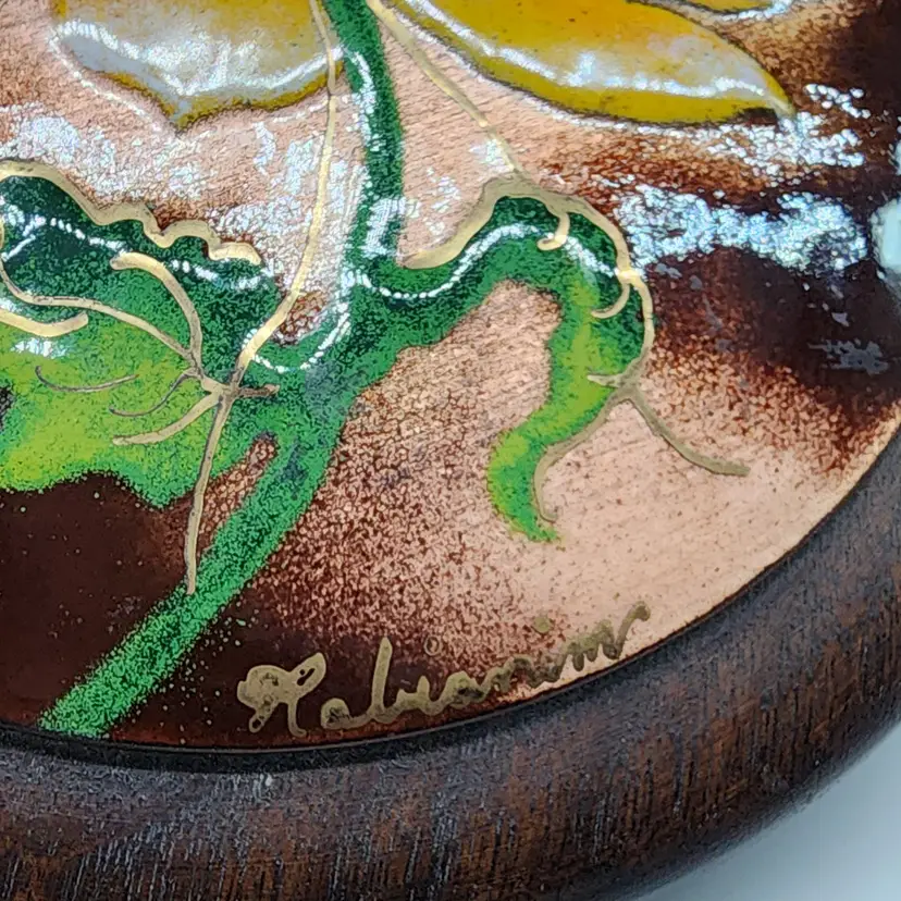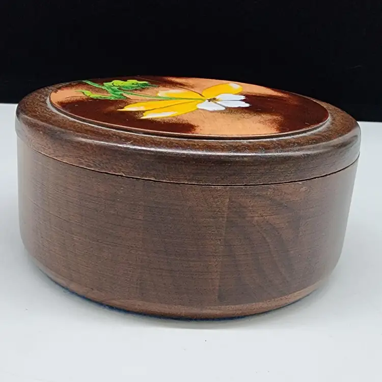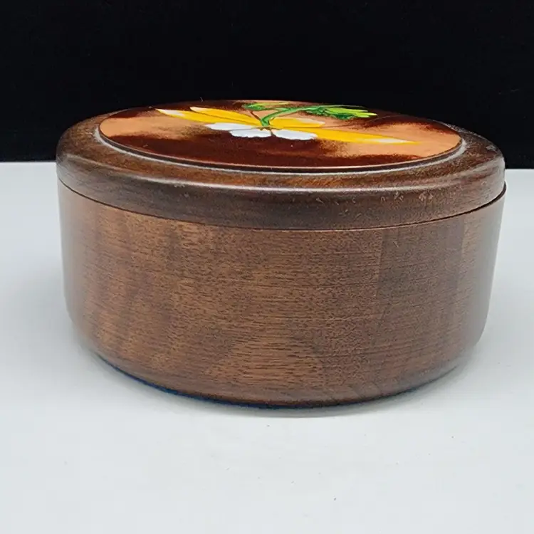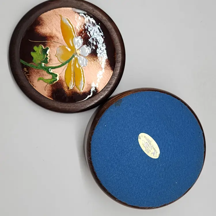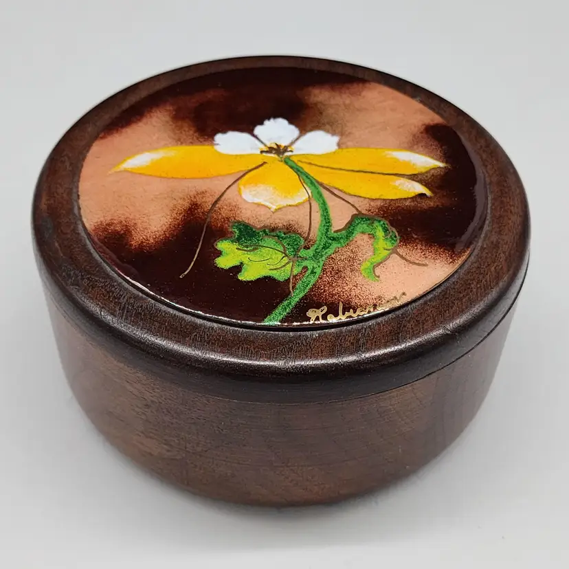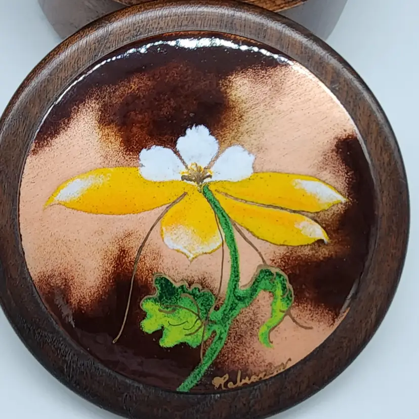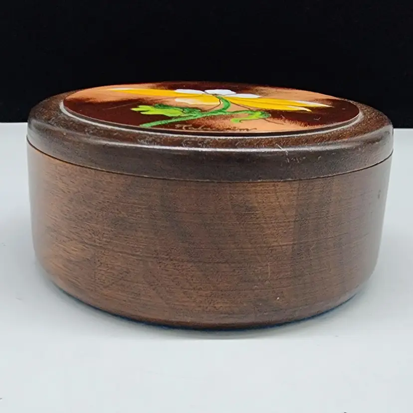 This charming vintage trinket box, featuring an enamel floral design, is perfect for those who want to keep their secrets safe in style. A delightful piece to brighten any space. Just be careful not to mistake it for a cookie jar.