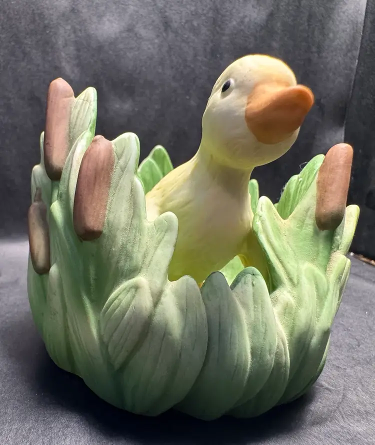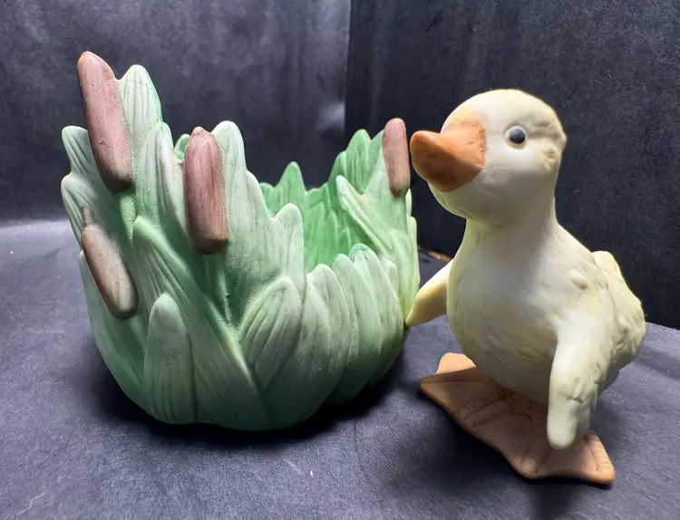 Woodland duckling in a basket, 2 pieces, fine porcelain and hand-painted, 1984