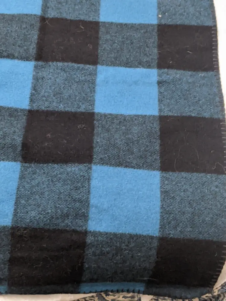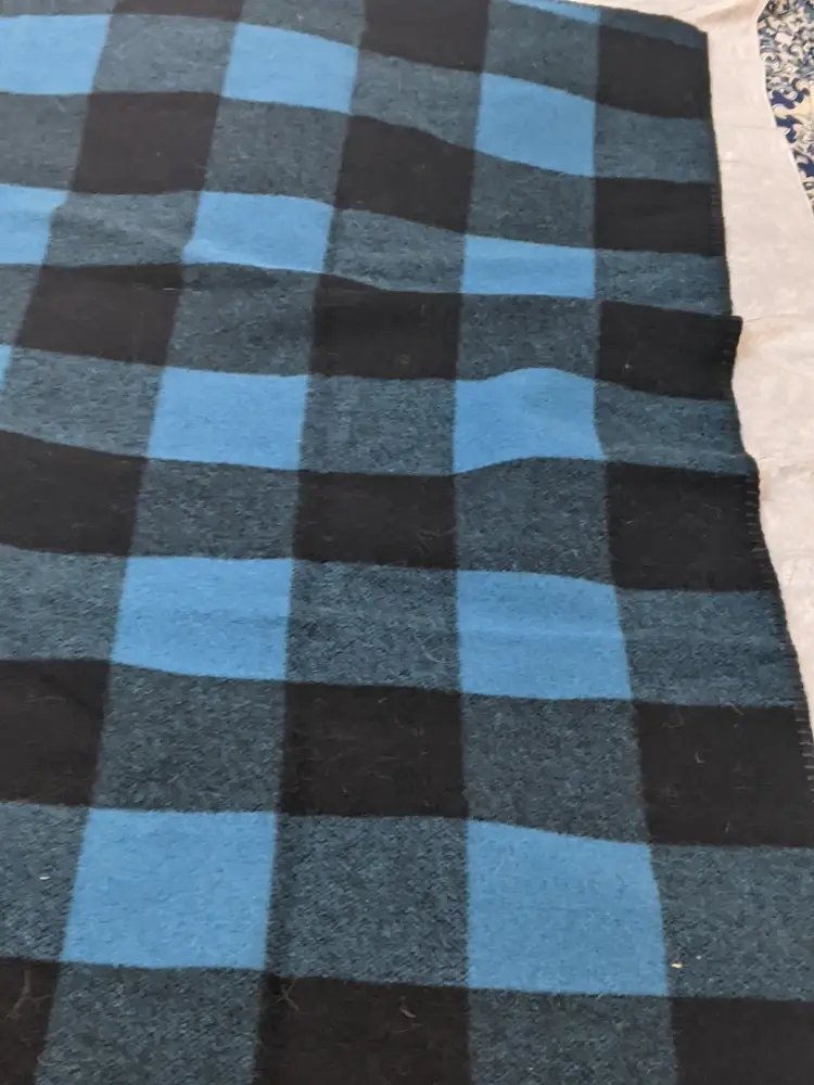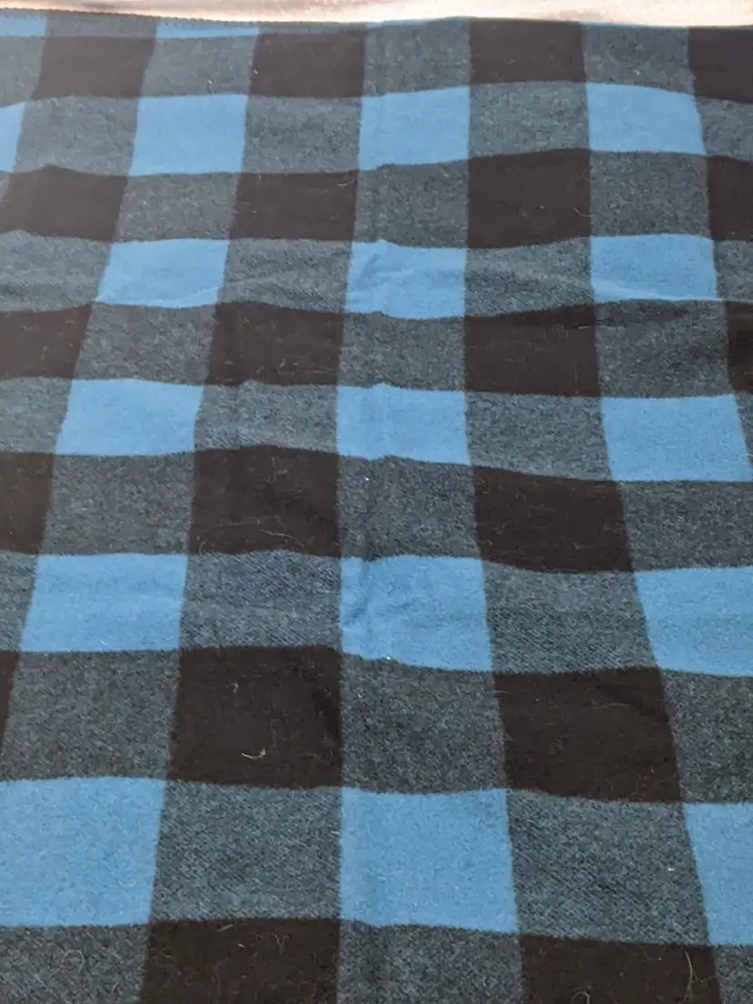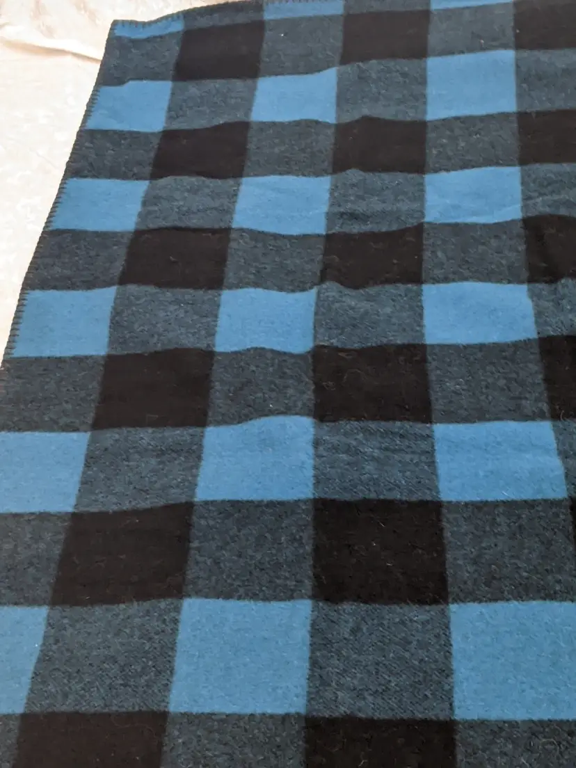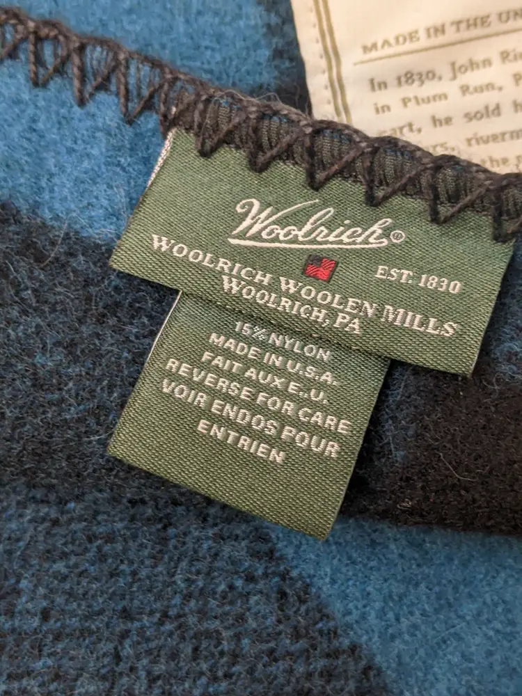 Vintage WOOLRICH Wool Black Blue Plaid Blanket 50x60 Camp Cabin Bedroom Stadium Throw Made in USA 85% wool 15% nylon Perfect for the sports stadium to keep warm. Great condition Clean with no damage. no weird smells. Please check the photos for details. Comes from a smoke free home. We do have pets. It is kept away from them