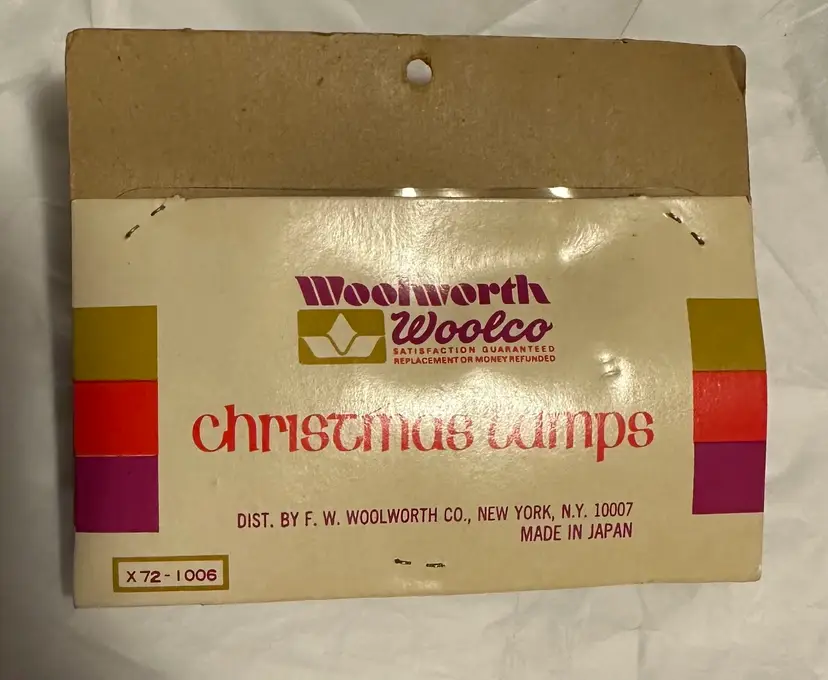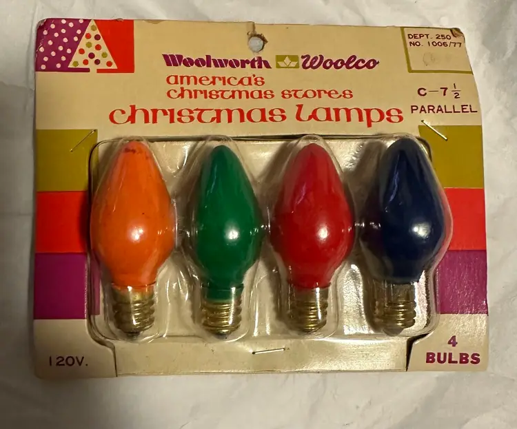 New old stock package of 4 Christmas light bulbs from Woolworth. Good condition.