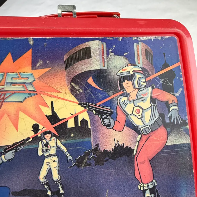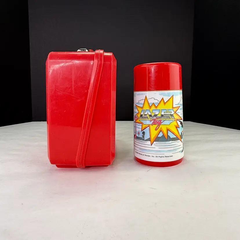 This collectible 1986 lunch box and thermos set features iconic Lazer Tag graphics. Nice piece of Millennial history