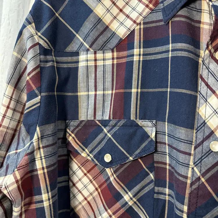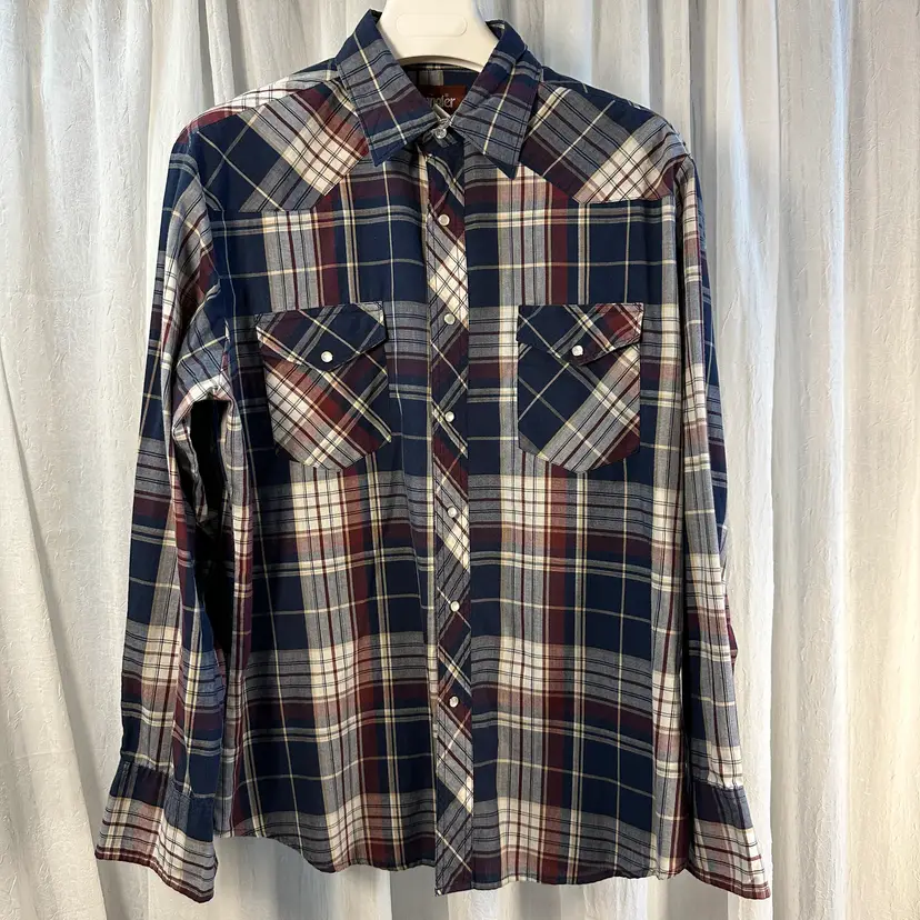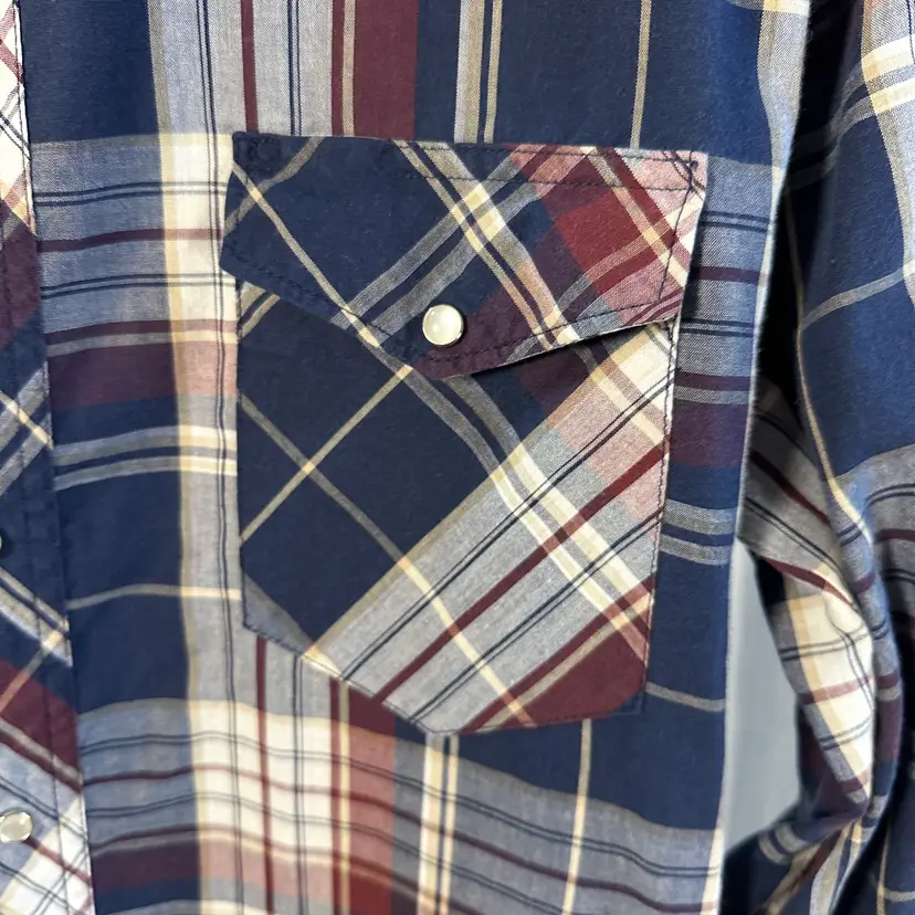 Department-Men Brand-Wrangler Style-Western Color-Blue/Red/White Sleeve Length-Long Neckline-Button Tag size-L