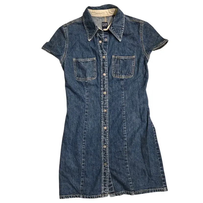 Vintage Y2K Gap Denim Dress Women's 6 Snap Button Long Cap Sleeve Cottage Core