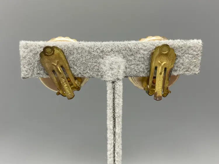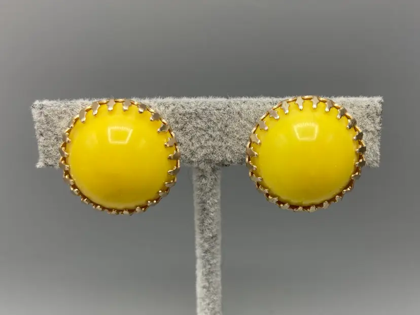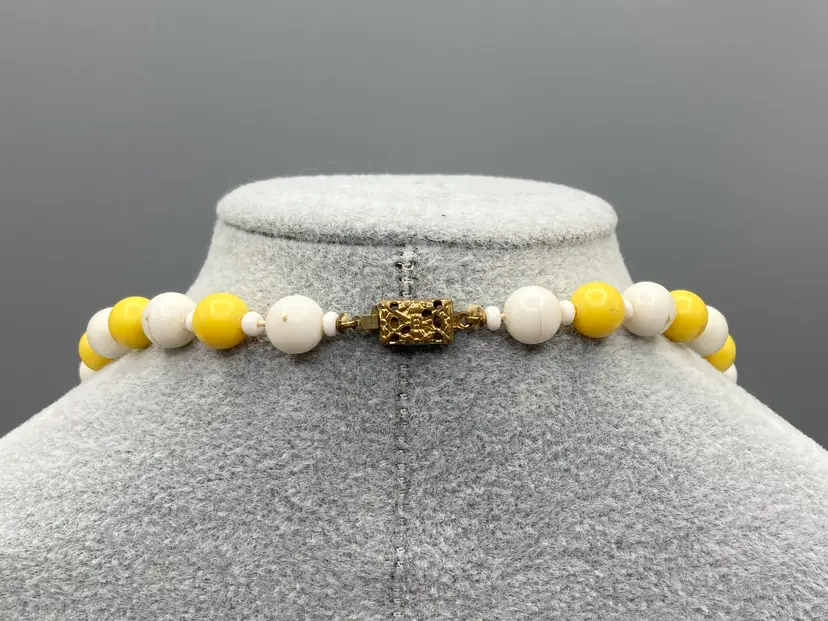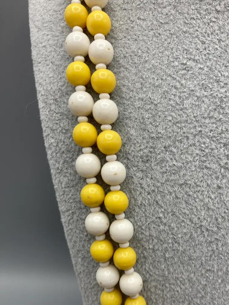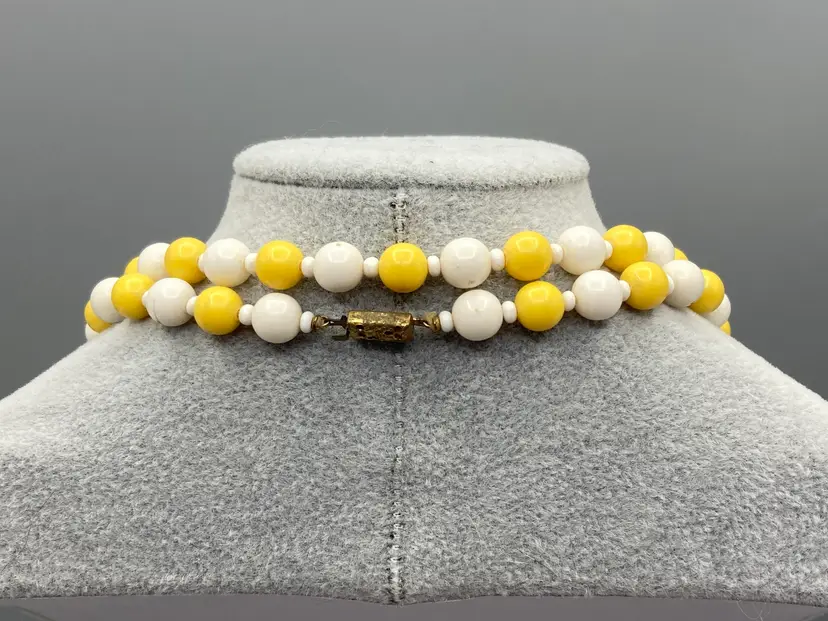 This set is in good overall condition. There is some patina to the metal. The necklace measures approximately 26 1/2" and can be doubled up as seen in the first picture. The earrings measure approximately 3/4".