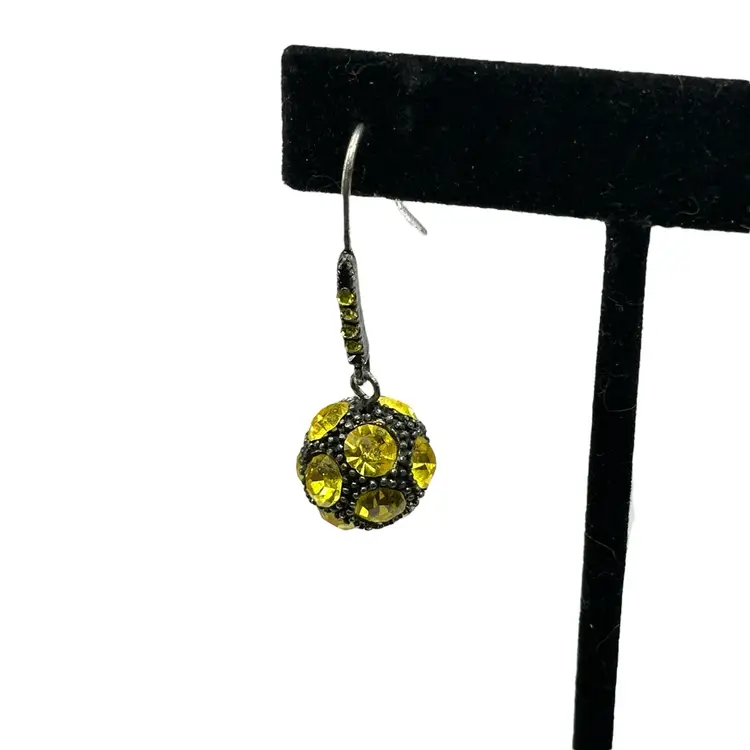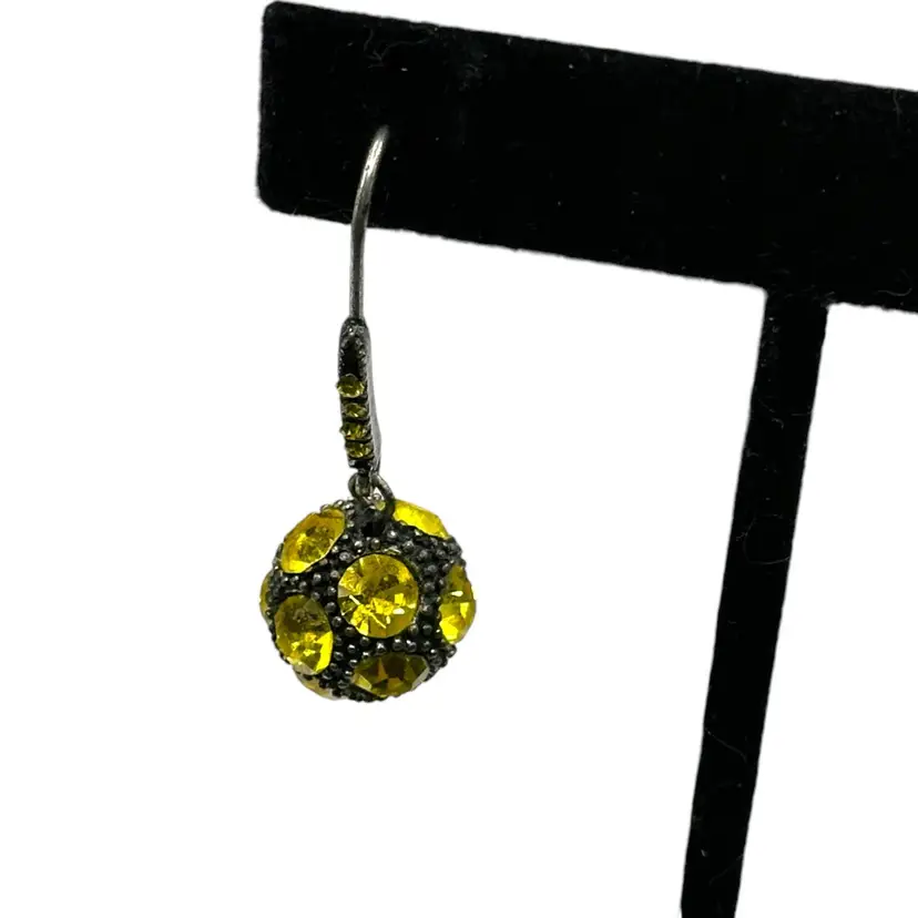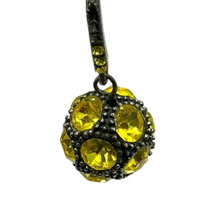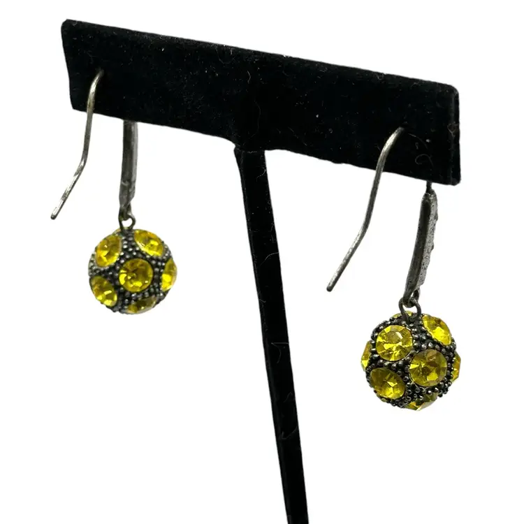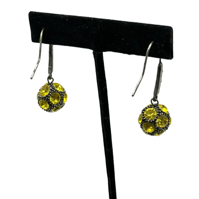 Vintage Yellow Rheinstone Glob Dangle Earrings Costume Jewelry Yellow citrine color stones and silver-toned Hook closure is lightweight small Glam, 90s, retro, vintage Excellent condition