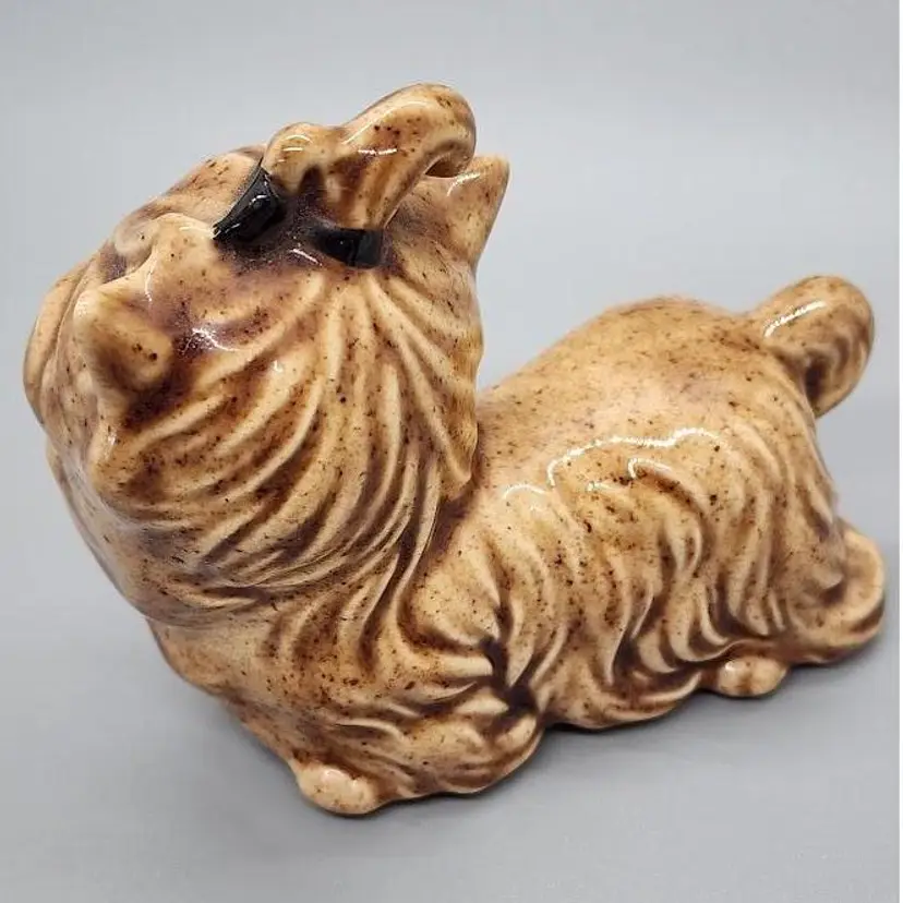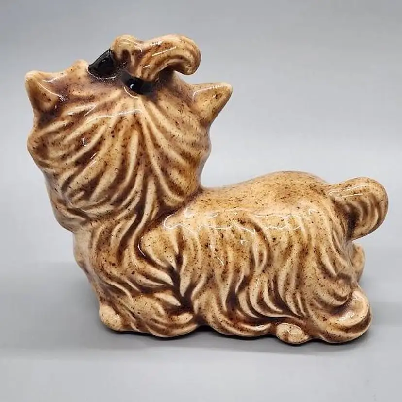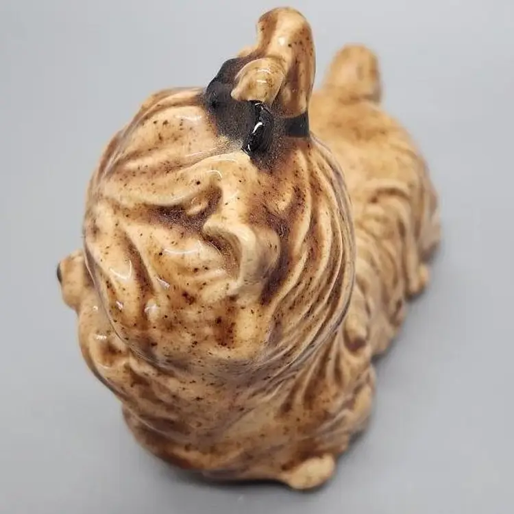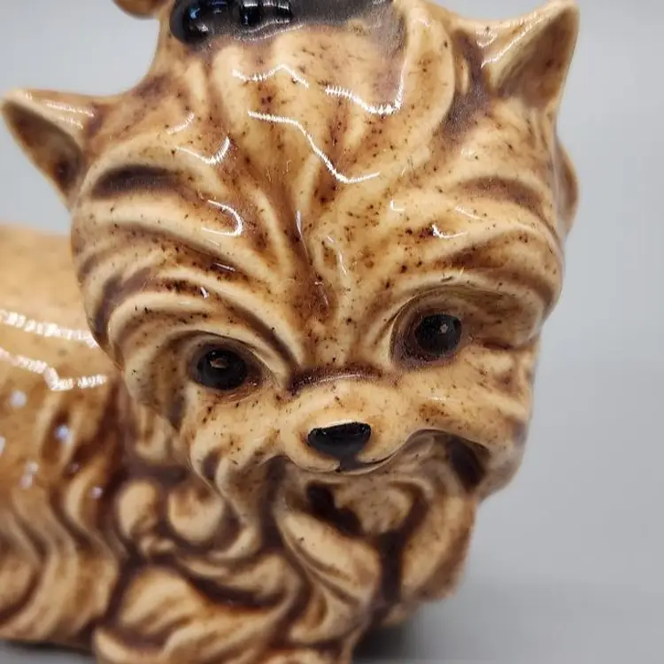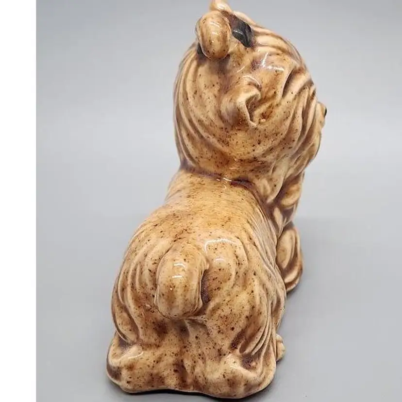 Sweet little Yorkshire Terrier hobbyist ceramic dog figurine. This cute guy measures 3 1/2" long x 3" tall x 1 1/2" wide. No chips, cracks or crazing.