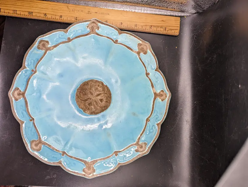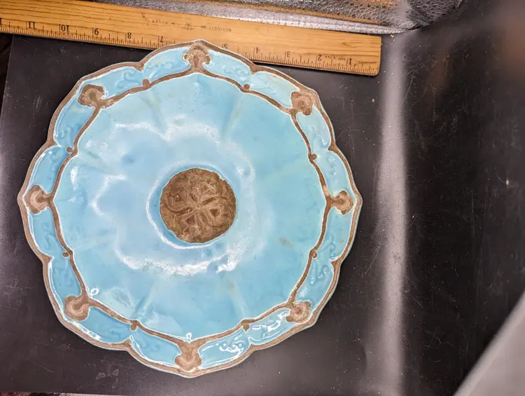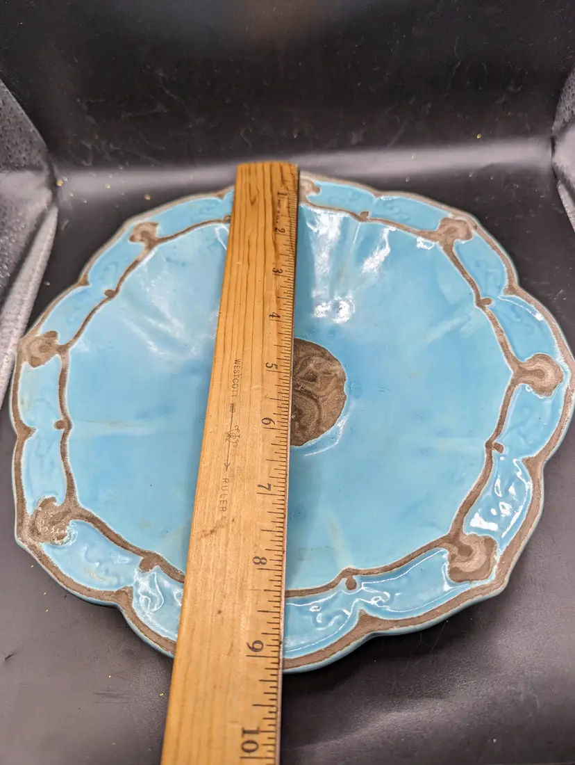 This is a stunning Vintage Zaccagnini Italian Pottery Bowl Stamped Turquoise 9.25". There is one small chip on the back as seen in last picture thus the price decrease. Please see all pictures for condition and measurements.