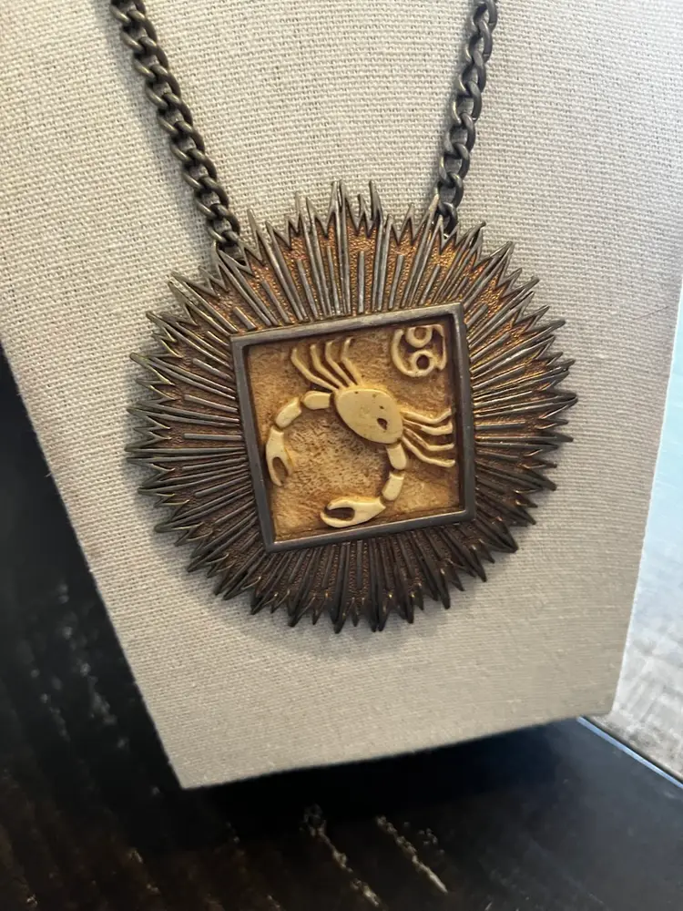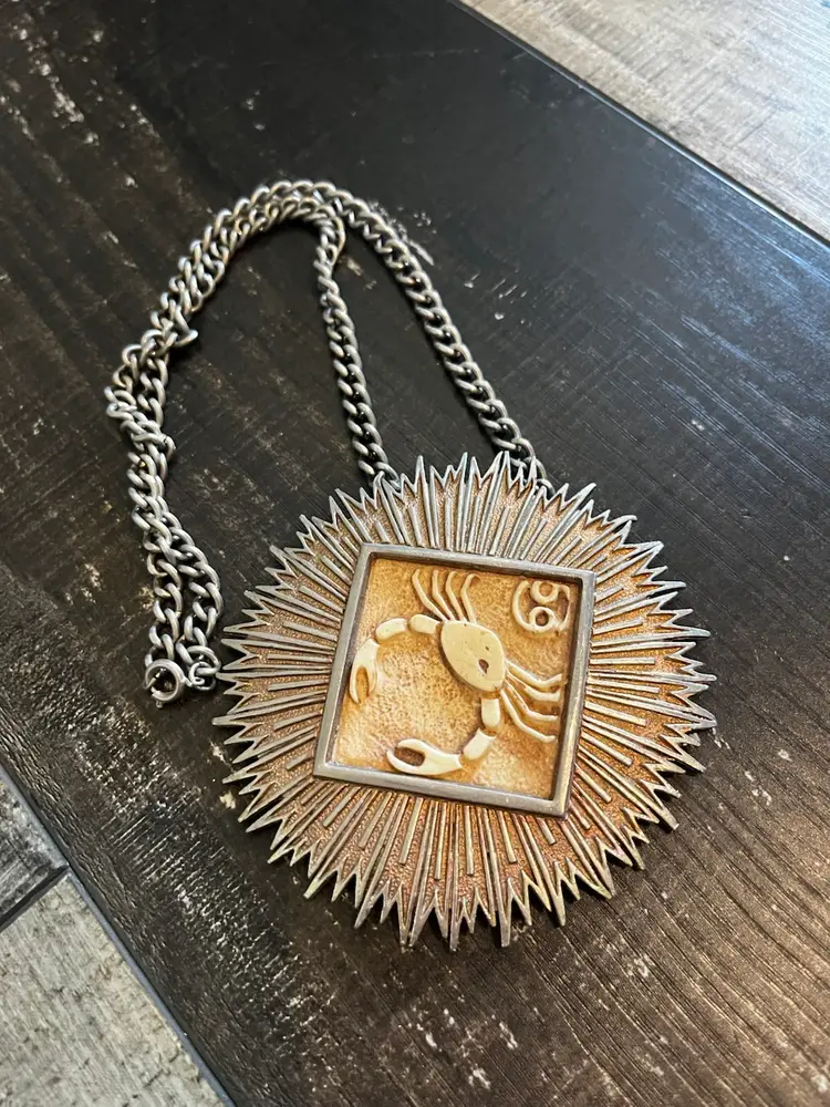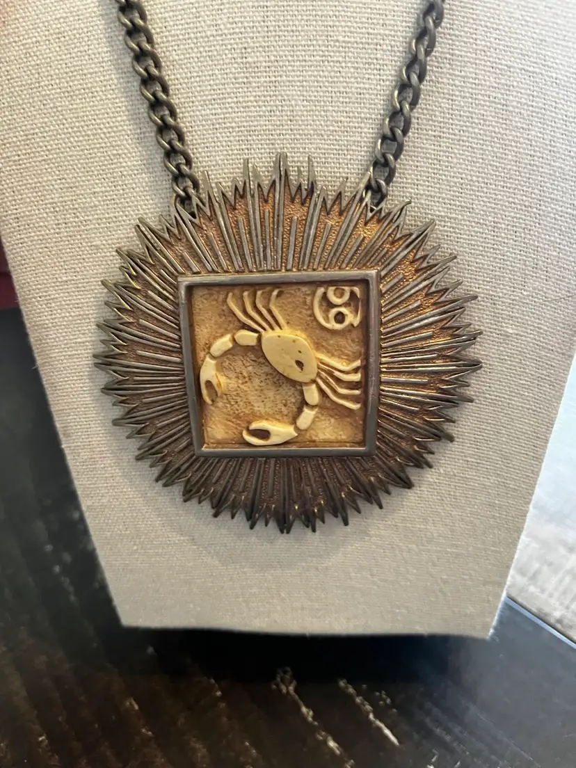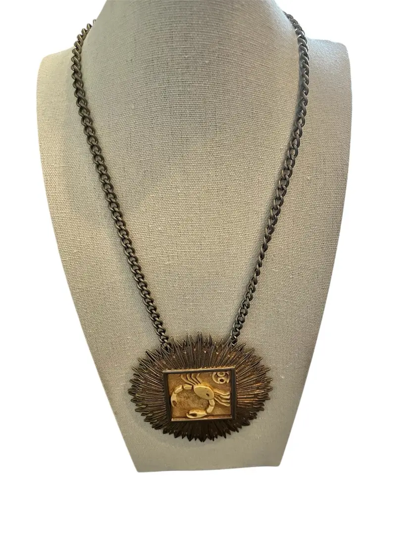 Vintage Cancer Zodiac Starburst Pendant Necklace