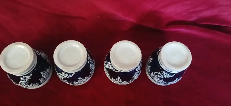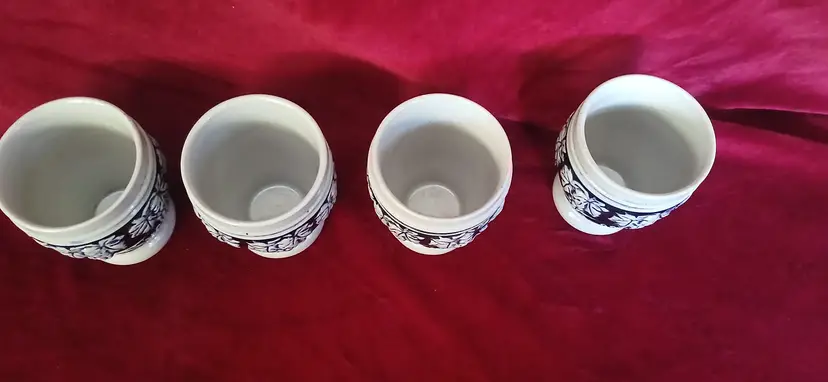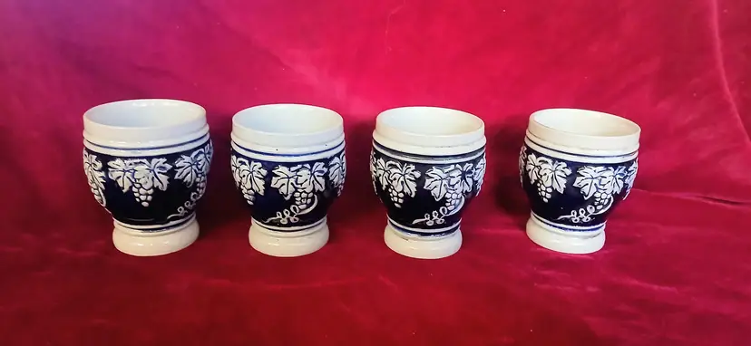 Salt Glazed Color: Deep cobalt blue Measuring 3 " tall 3"" wide In very nice condition Please check out my other listings as I will combine shipping!