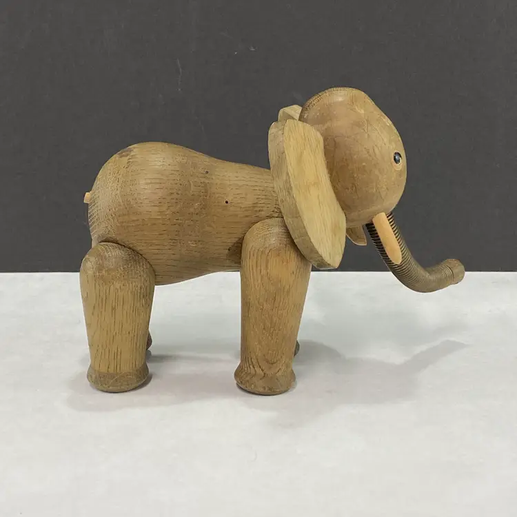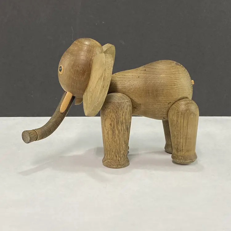 Vintage Zooline Style Jointed Wood Elephant Figurine