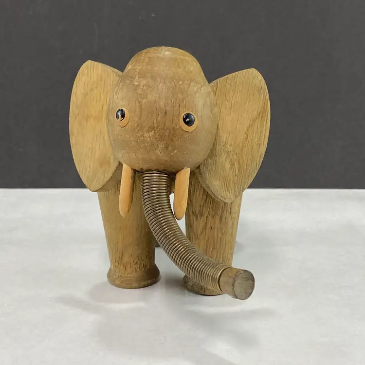 • Made of wood with jointed legs • Flexible metal trunk made of a spring • Smooth, natural wood finish