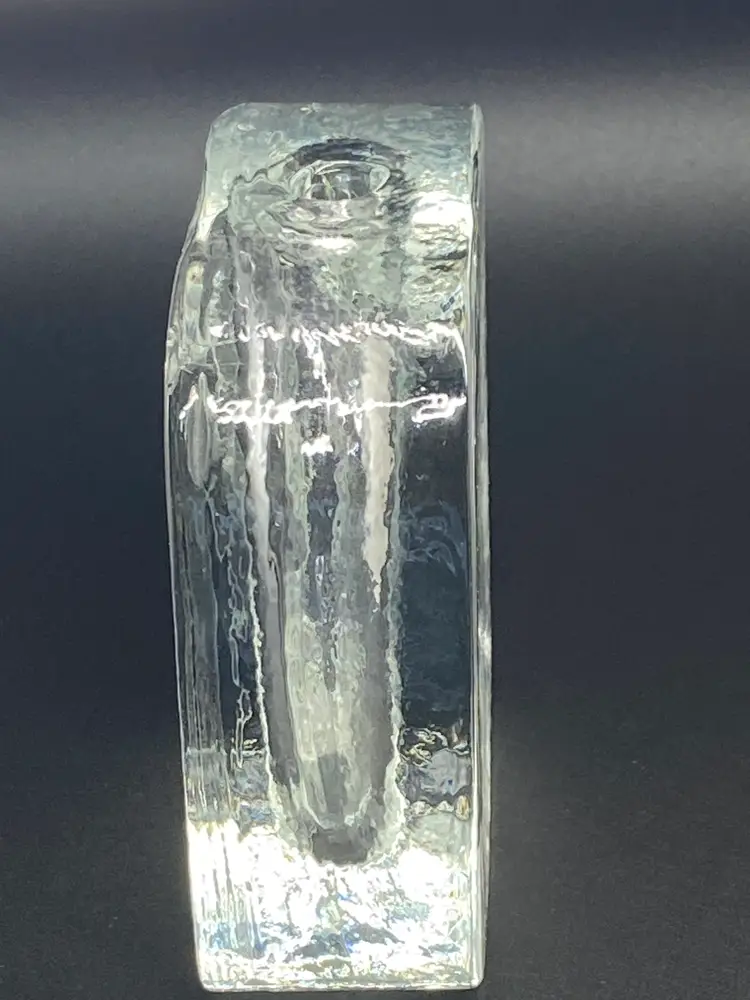 Crafted from clear textured glass, this vintage Zweigvase offers a unique touch to your home decor. The vase measures 4.5 inches in both height and width, making it a compact and elegant addition to any room. Its small size is perfect for displaying small flower arrangements or as a standalone decorative piece. The vase's textured pattern adds depth and character, reflecting light differently than smooth glass surfaces. Despite its vintage origin, this vase weighs a sturdy 2 pounds, ensuring it remains stable on any surface. Its unbranded nature speaks to its unique and possibly handcrafted origins, setting it apart from mass-produced decor.