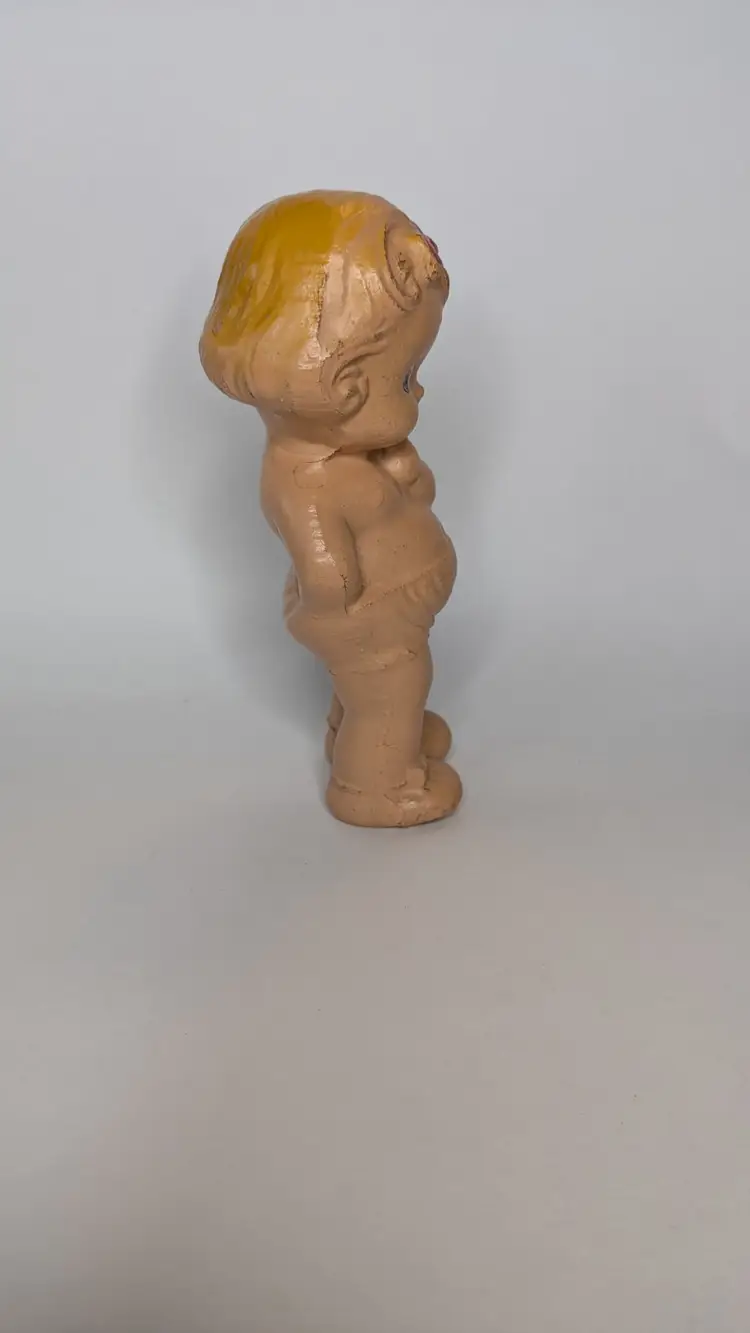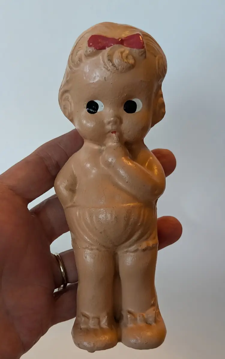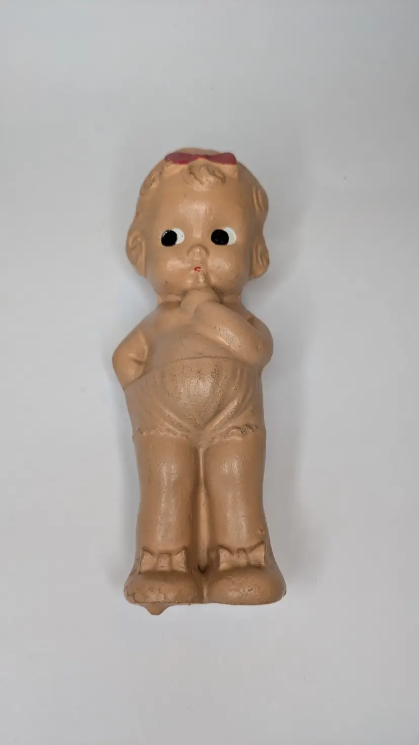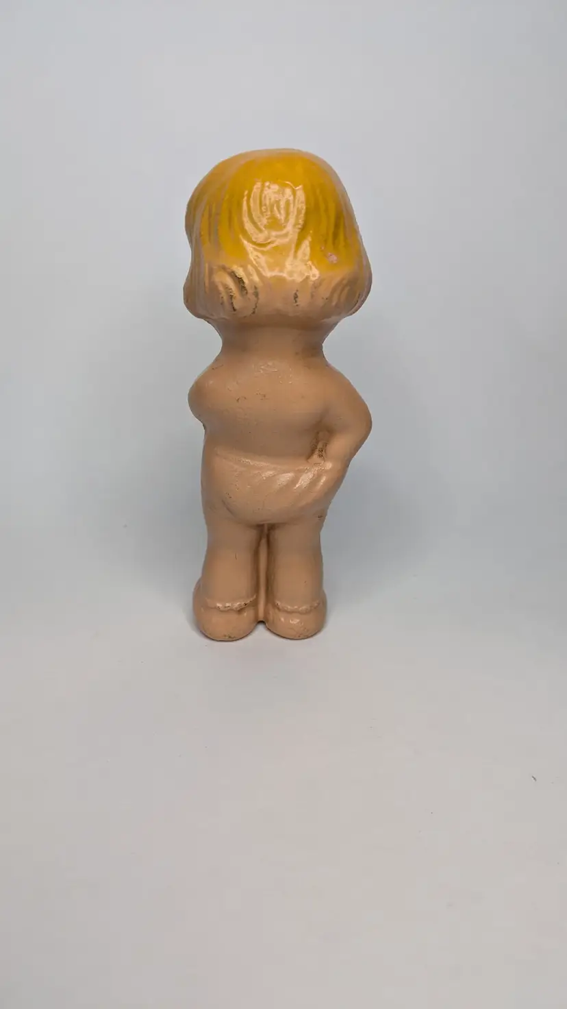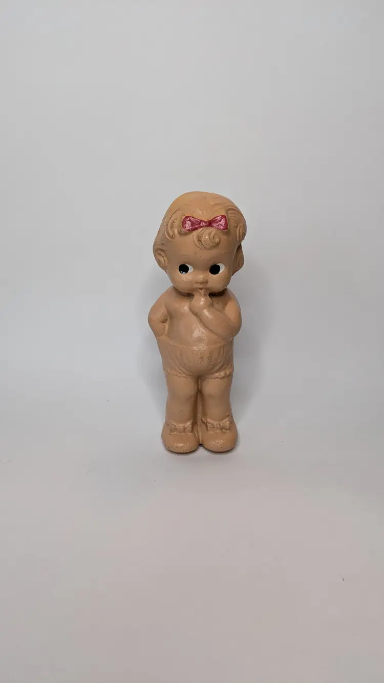 This Vintage/Antique Kewpie Charlotte doll Bisque Mold is a charming 5.5-inch hand-painted artist doll with curly blonde hair, blue eyes, and a light complexion. The doll is part of the American Character series and is anatomically correct, making it a collectible piece for doll enthusiasts. Its vintage appeal adds to its charm, and being a single unit makes it a unique addition to any doll collection. Perfect for all occasions, this Kewpie doll is a timeless piece that embodies the classic character of the American doll.