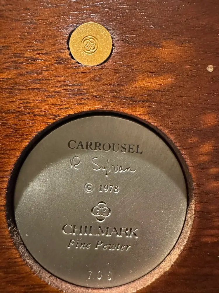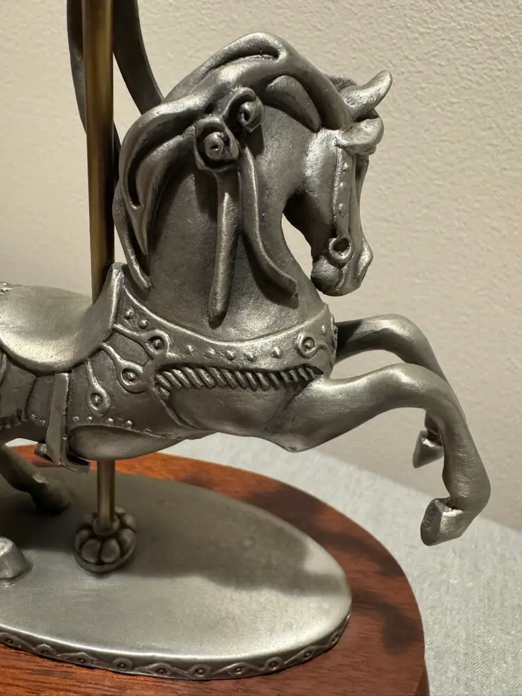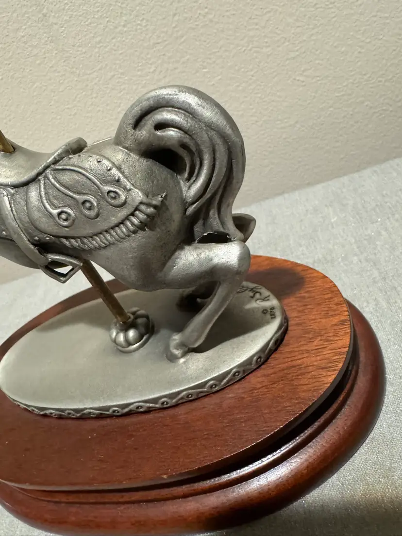 Vintage 1978 pewter Carousel Horse Sculpture Signed by Rebecca Sylvan (R. Sylvan) In excellent condition Chilmark Fine Pewter No. 708 Tall 8.25” x based 6.75” Weight 2.2 pounds