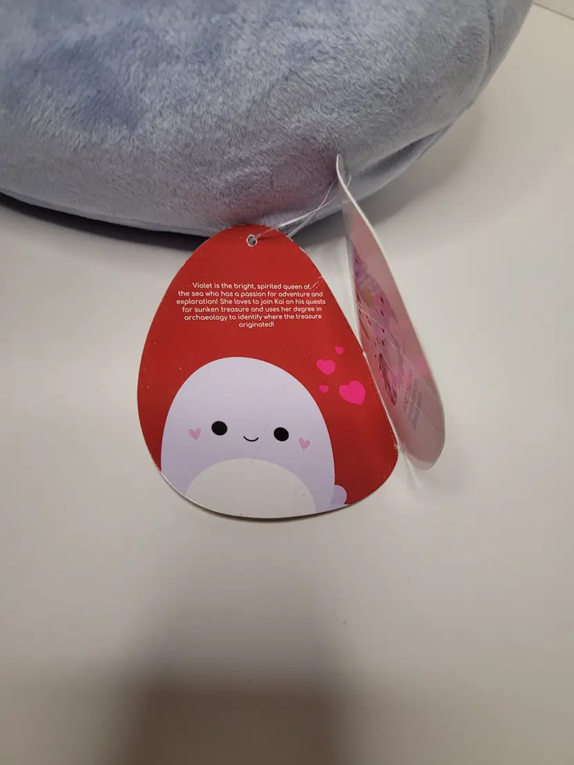 Violet The Octopus Heart Cheeks Squishmallows Valentine Rare NWT This wonderful Rare Squishmallows is NWT - with a slight imperfection like a tiny rough spot on the Plush. About the size of a pea. It's to the side of the mouth just above the white area. It's not very noticeable. And it's otherwise perfect and NWT See photos they're the best description Ships fast