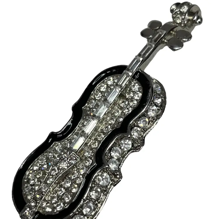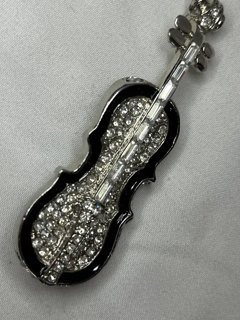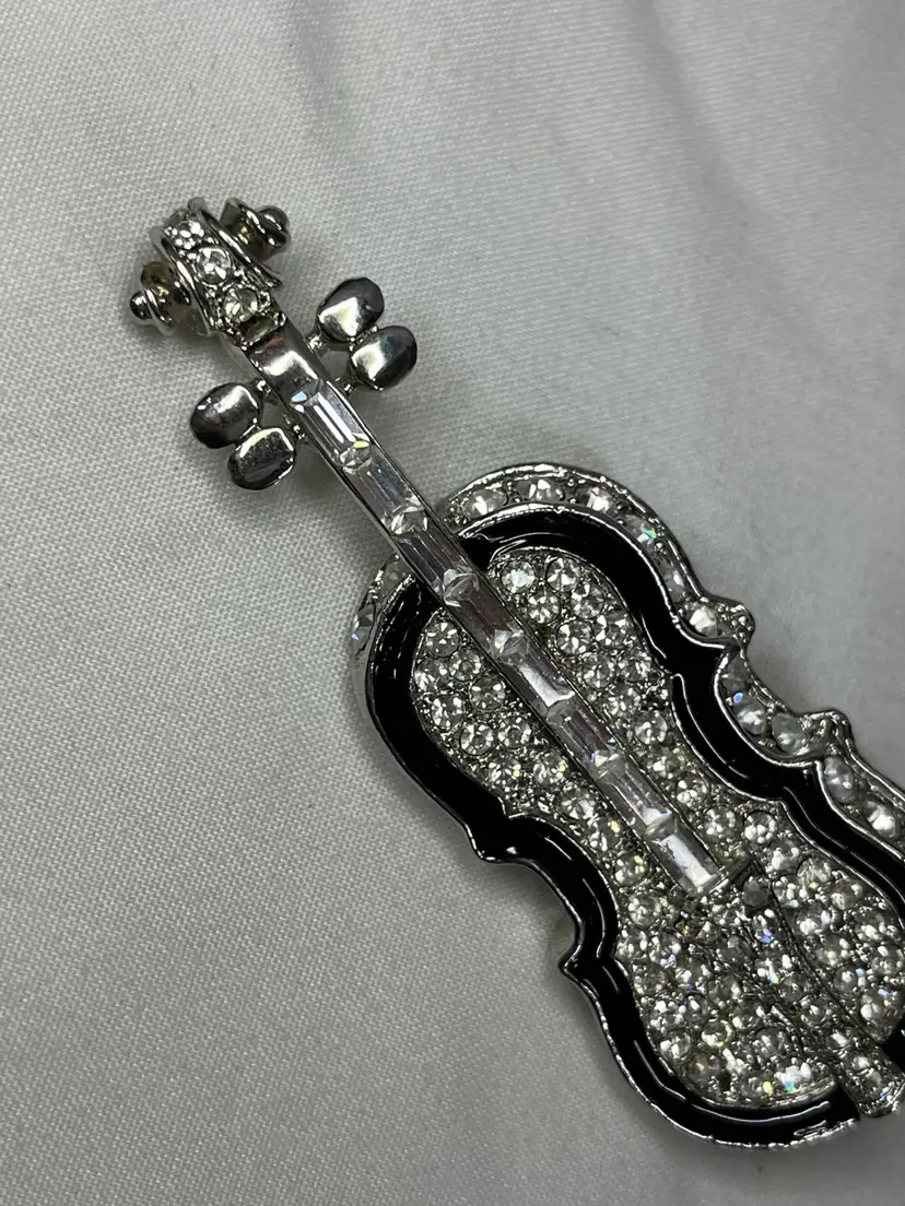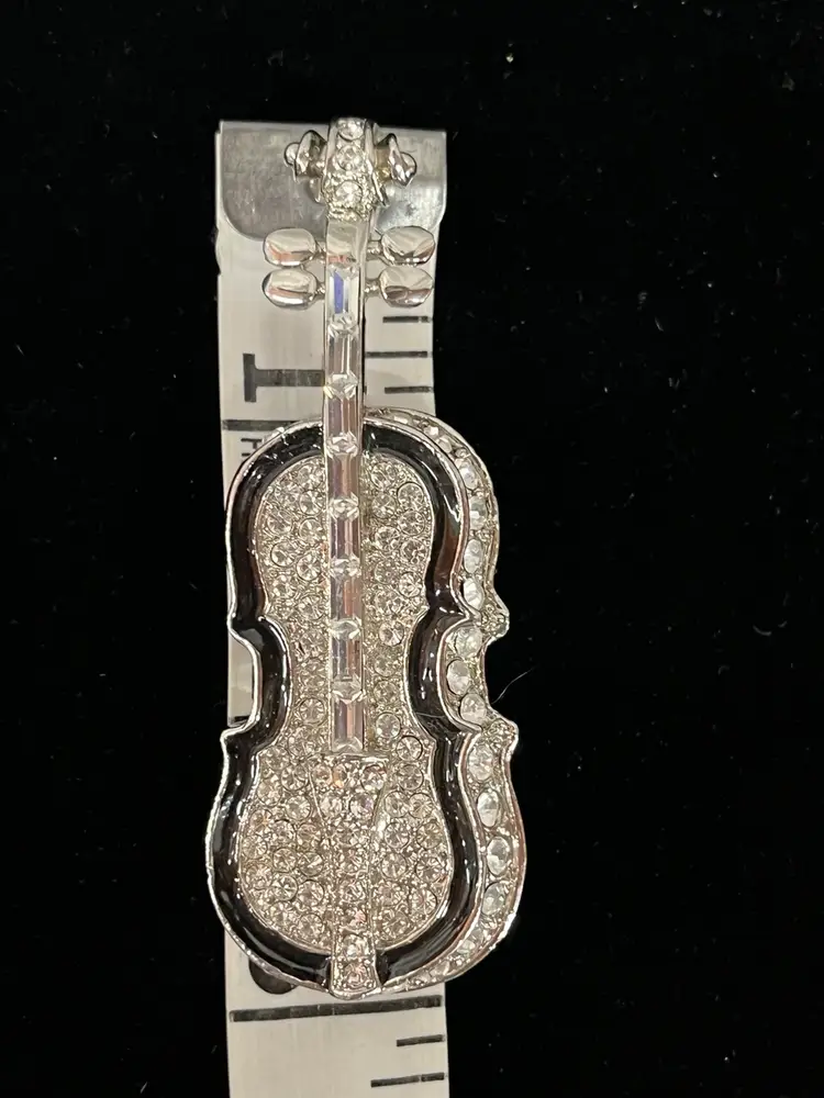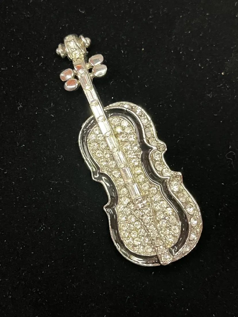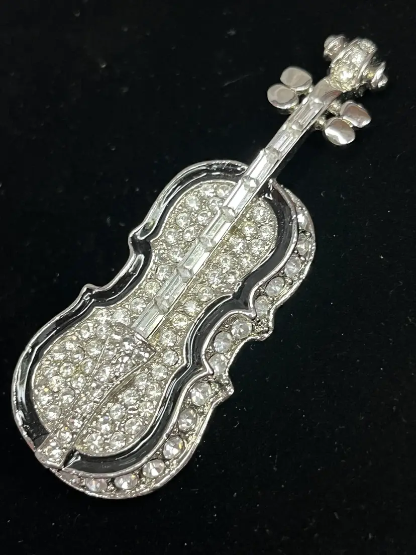 This lovely brooch is 3 inches long and has many bright and sparkly rhinestone crystals.