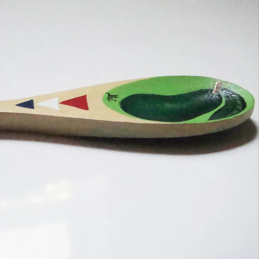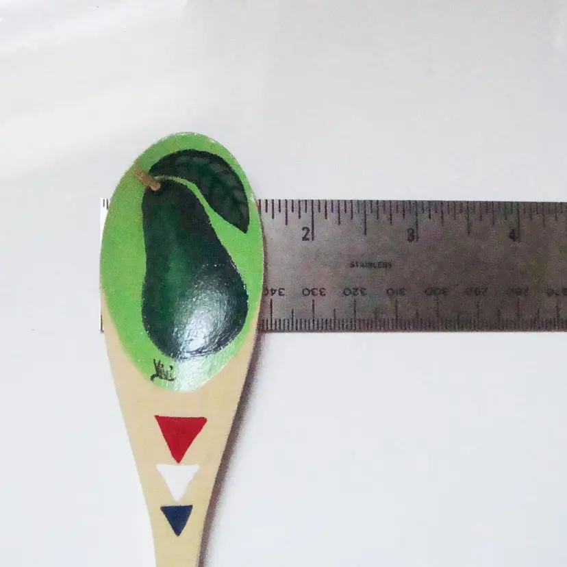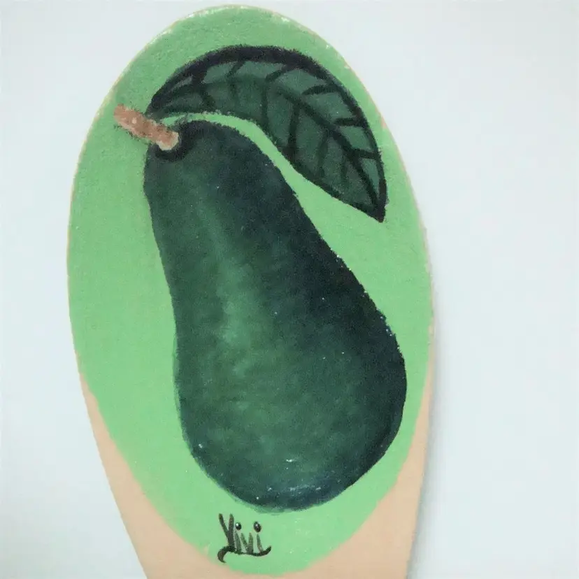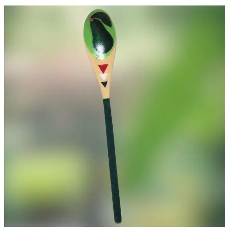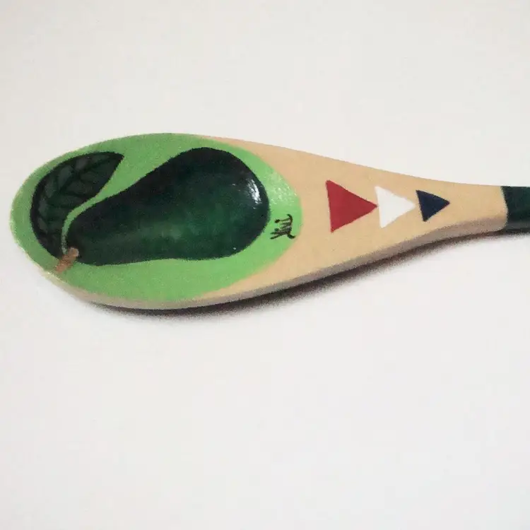 Unique painted avocado wooden spoon, signed Vivi. Size: Small/10" EUC, possibly unused. Cinco de Mayo