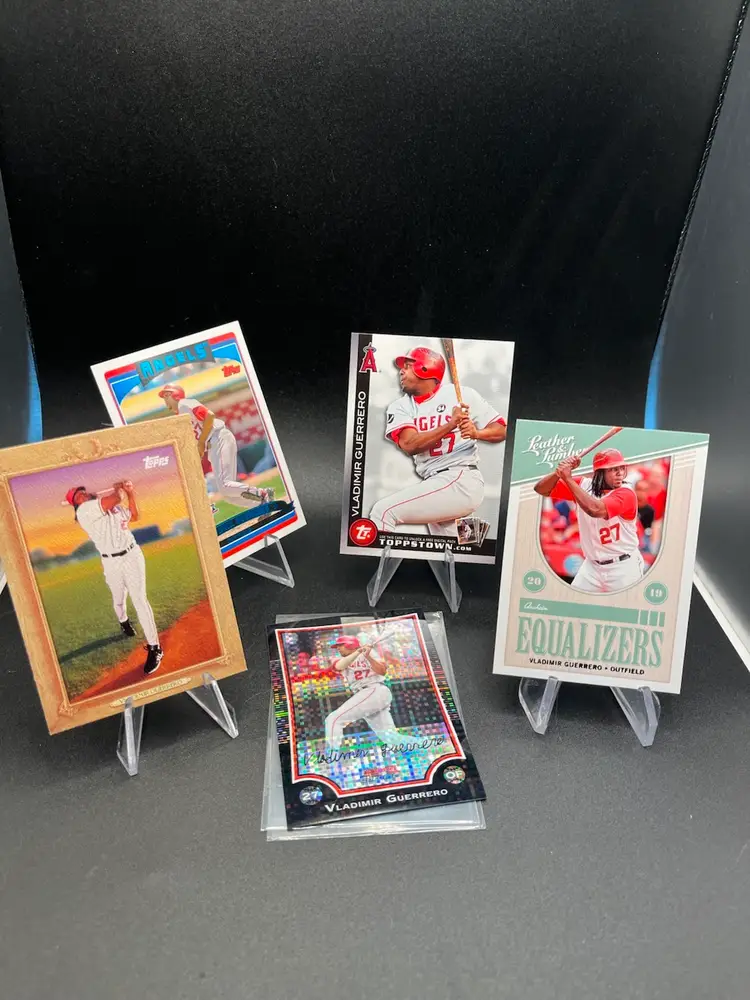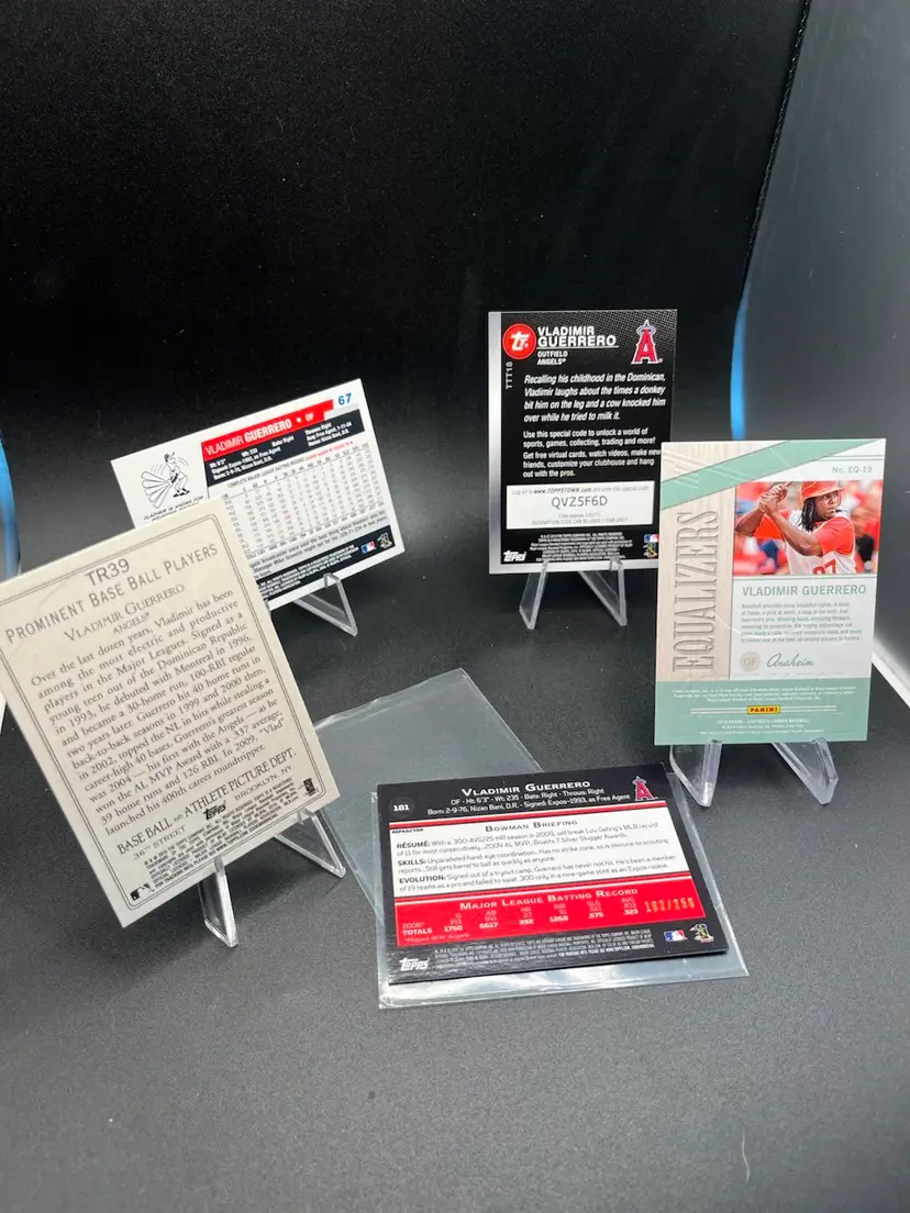 This is a 5-card lot of Vlad Guerrero Sr of the Los Angeles Angels. Contains 3 Topps cards and a Leather & Lumber card. Also includes a 2009 Bowman Chrome Xfractor black # /250