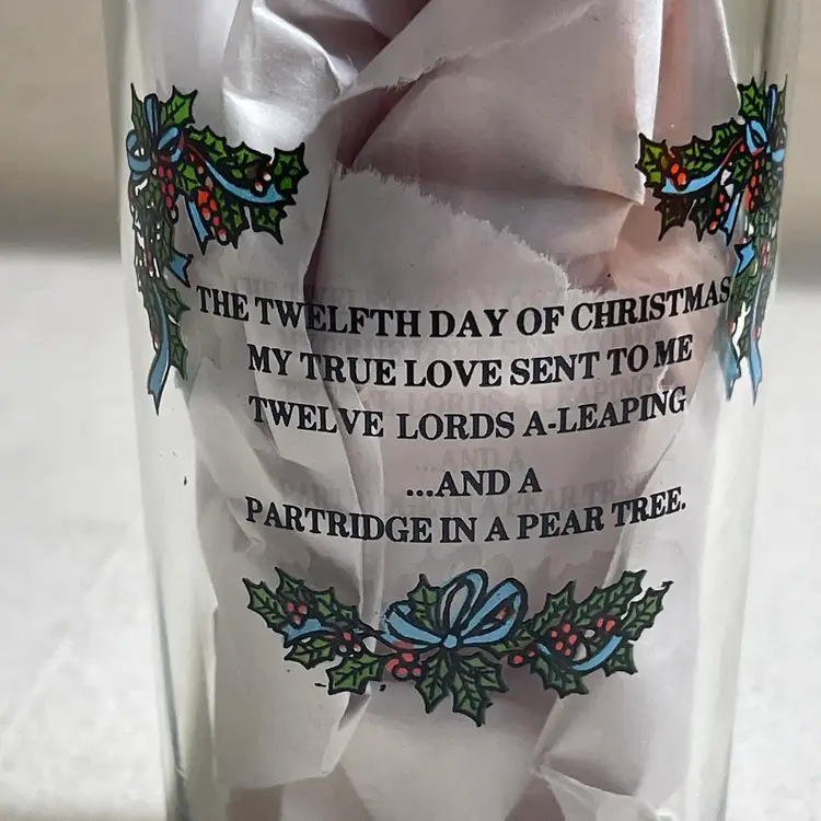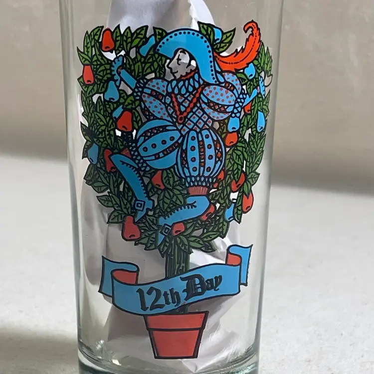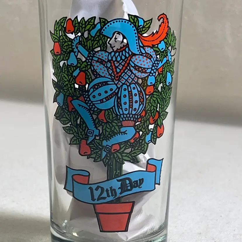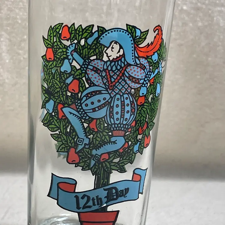 Celebrate the holiday season with this vintage Indiana Glass drinking glass. Featuring the iconic 12 Days of Christmas design, this glass is perfect for your Christmas Day celebrations. The glass is made of high-quality materials and is perfect replacement for your missing glass