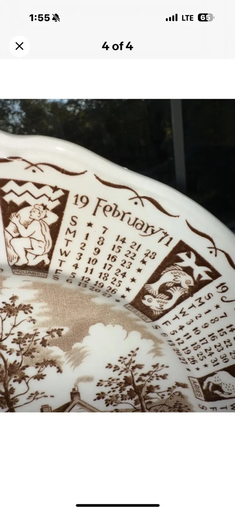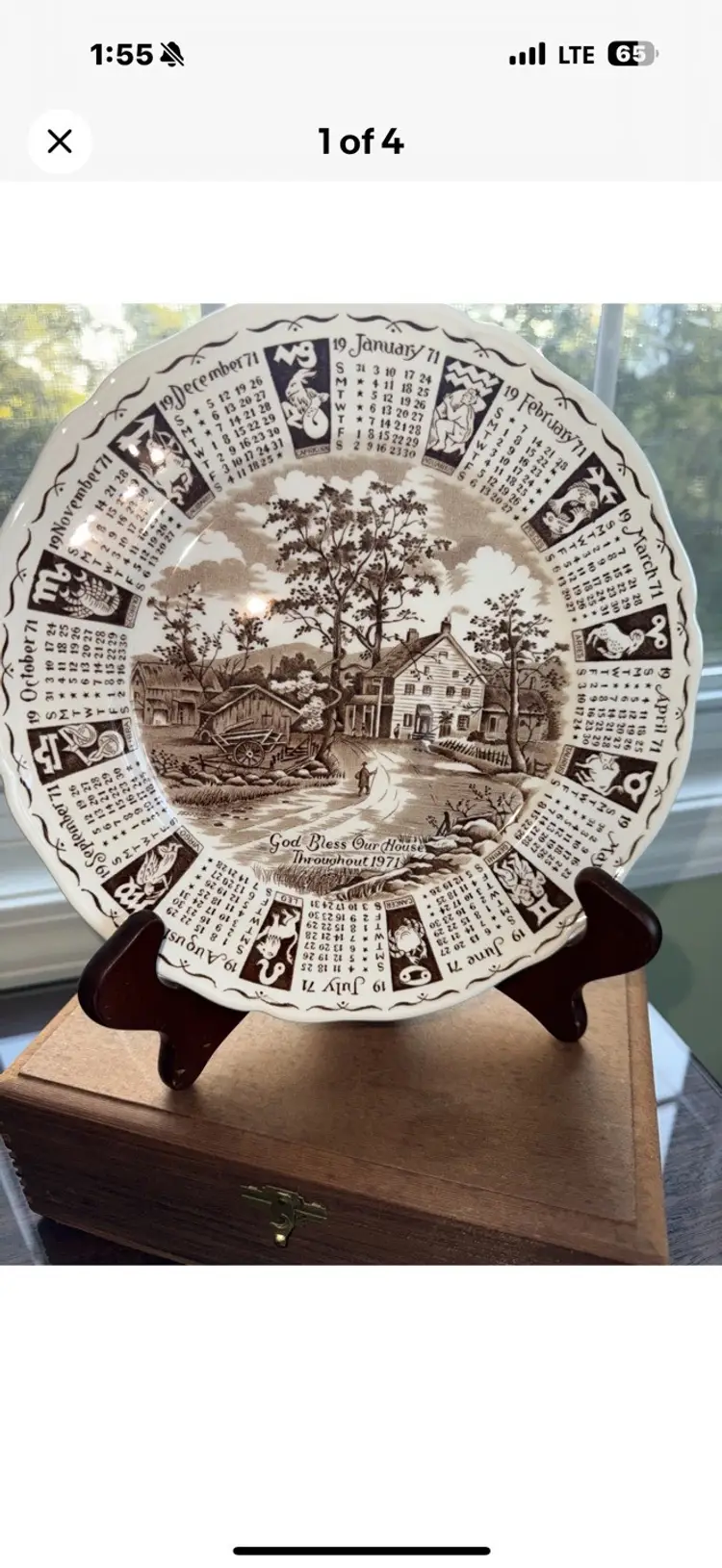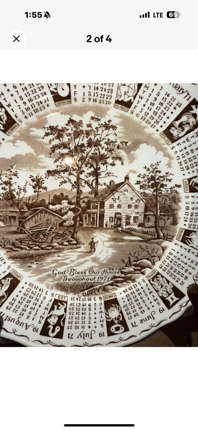 The product is a vintage Alfred Meakin brown Staffordshire calendar plate made in England in 1971. This round porcelain plate features a multicolor brown transferware pattern and has a diameter of 9 inches. With the original printed backstamp indicating its vintage authenticity, this wall plate is a charming piece that showcases the craftsmanship and design of Alfred Meakin in the United Kingdom.