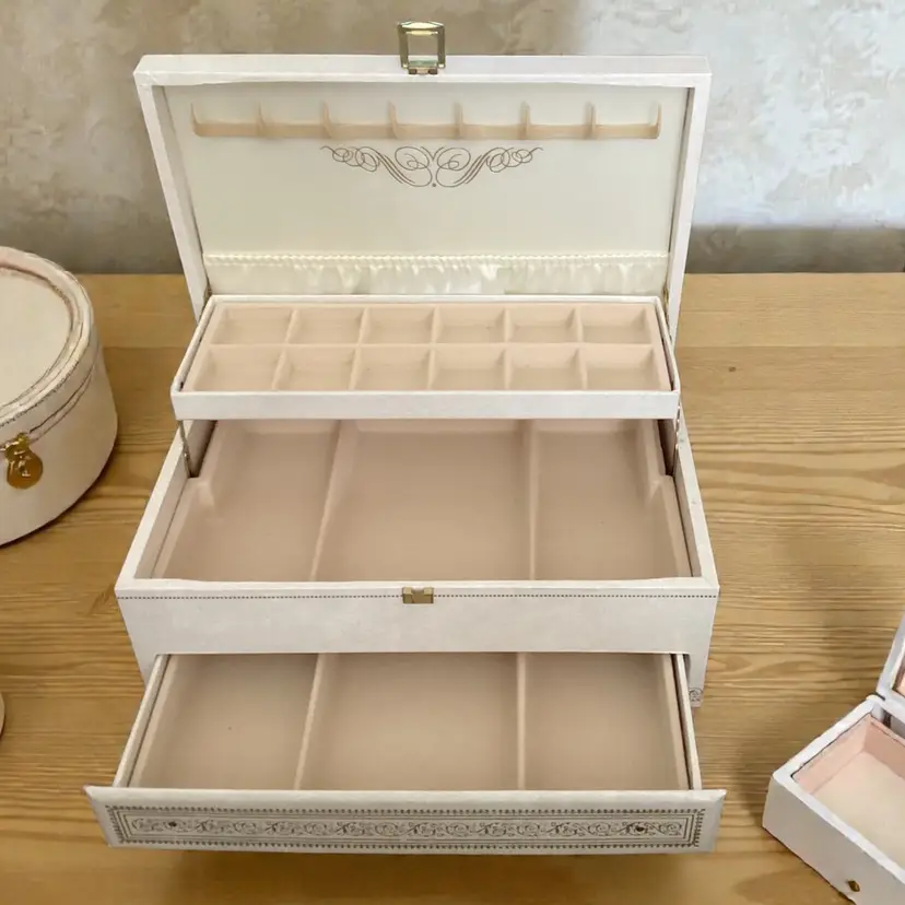 Vntg Mele USA Jewelry Box 3 Tiered Gold Accents