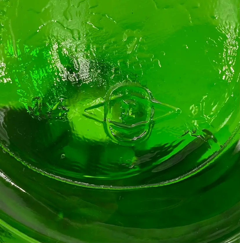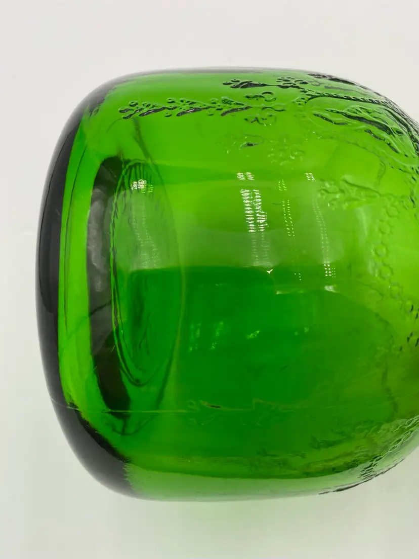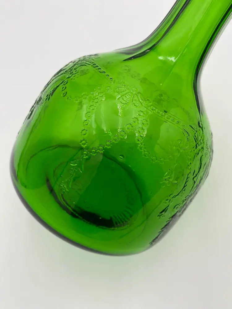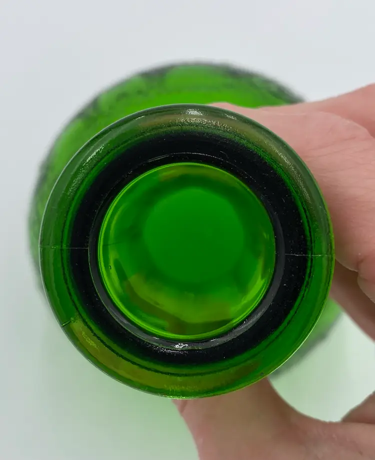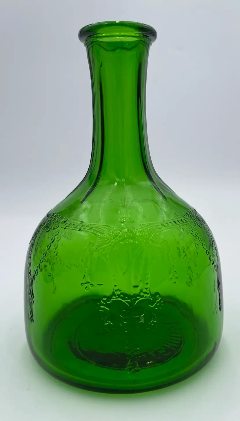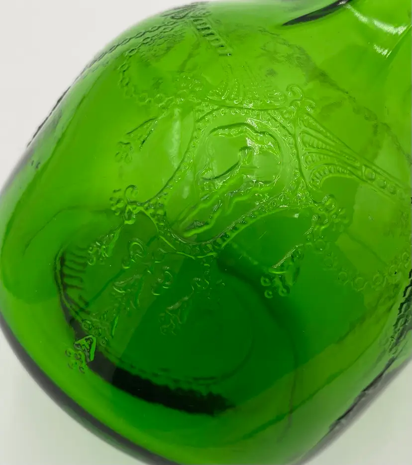 This vintage (near antique!) green glass bottle from 1931 is a beautiful addition to any collection. Made by the Owen-Illinois Glass Company in Bridgeton, New Jersey, it features a garland swag with a ballerina cameo. The Owen-Illinois logo is stamped on the bottom, as is the manufacturing plant Code of 14 (for Bridgeton, New Jersey) and the year code for 1931. The bottles were produced for the National Fruit Company in Washington, DC and Winchester, VA. The bottle was used for their Apple Cider Vinegars, specifically the White House Vinegar, and were designed to be reused/refilled with their vinegar while being enjoyed for the bottle's beauty.
