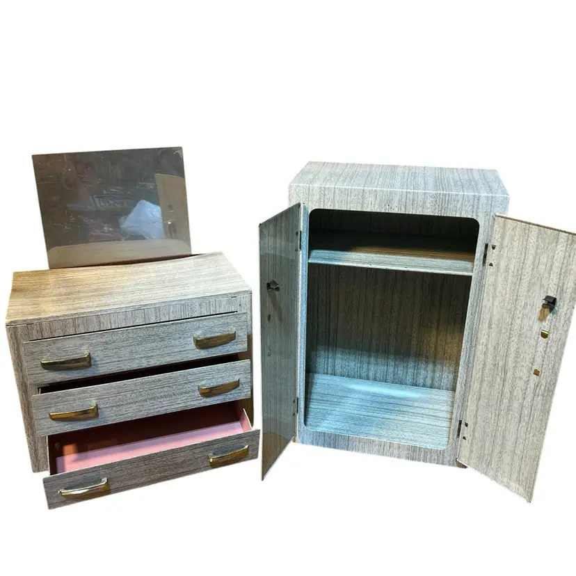 Vtg 1950s Metal Wood Grain Doll Furniture Armoire Wardrobe Dresser MCM