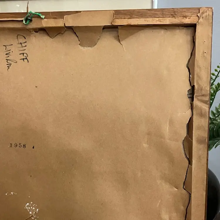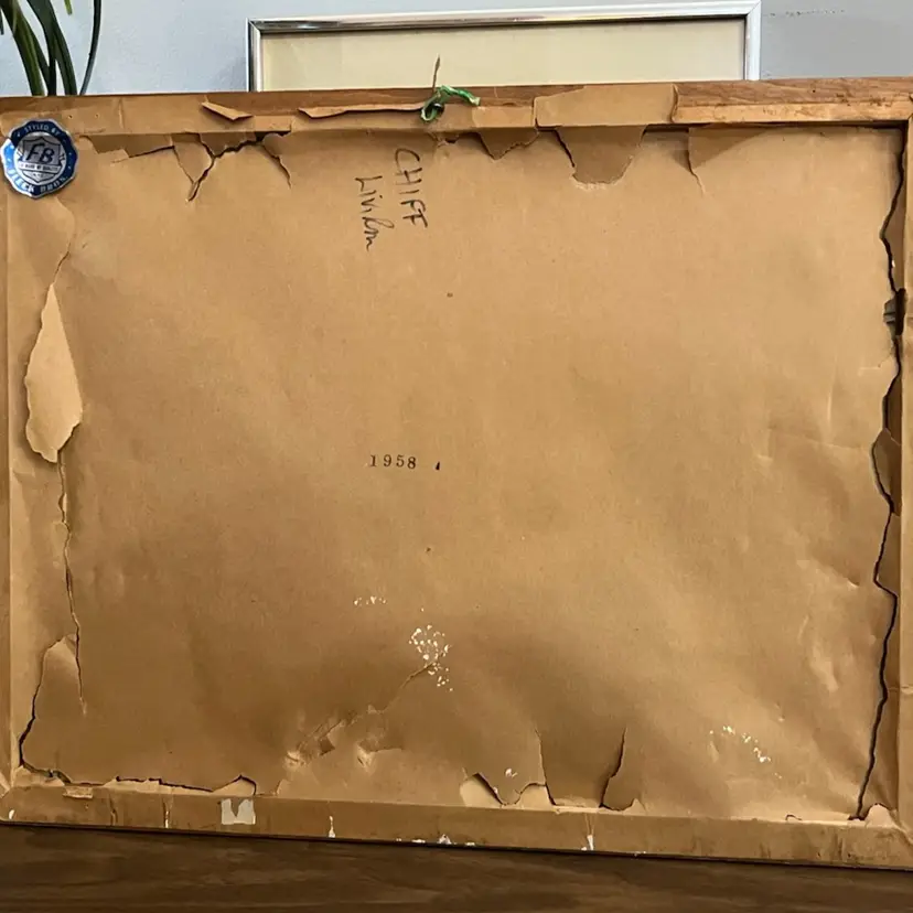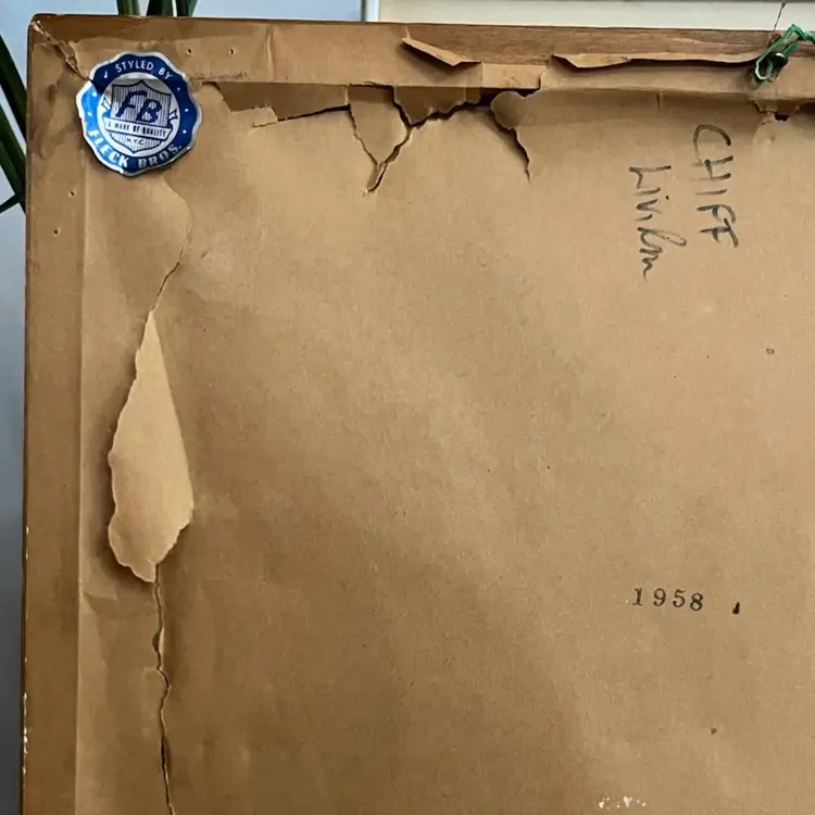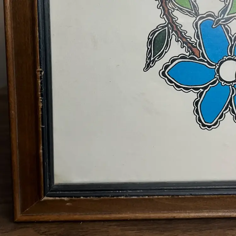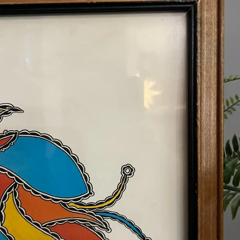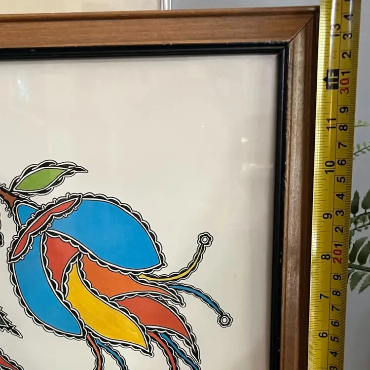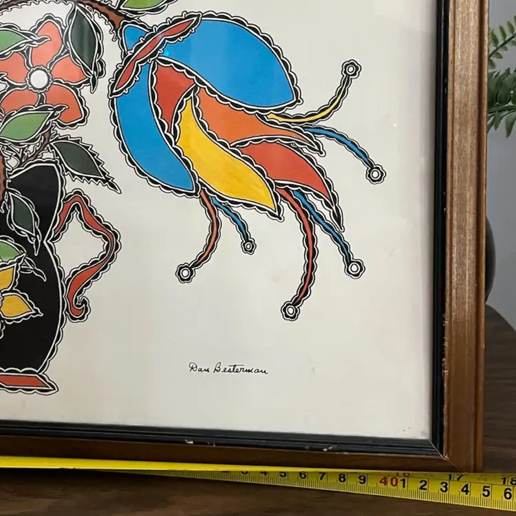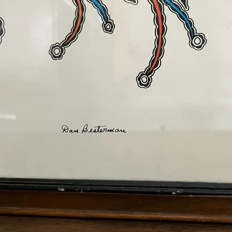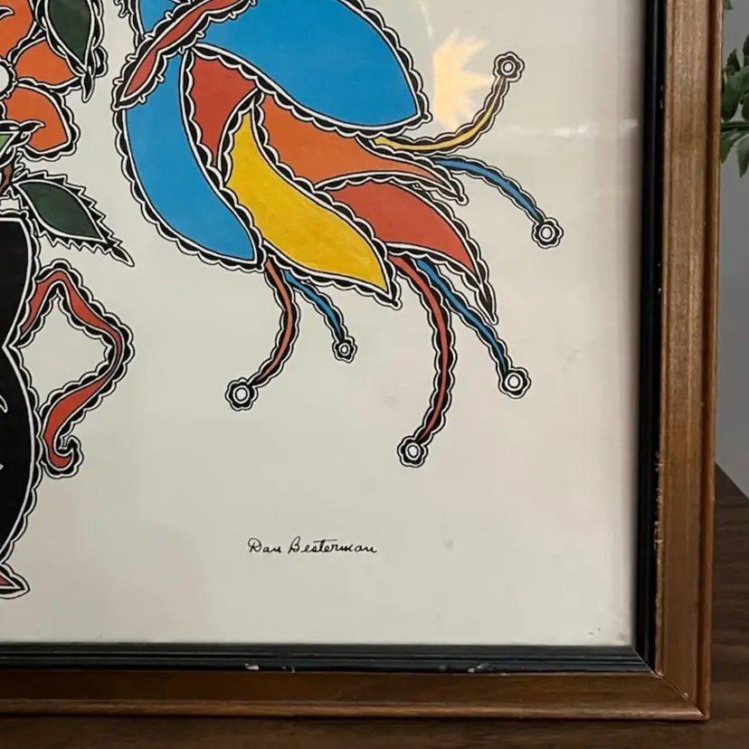 Frame and artwork underneath has some wear as shown. Backing of the frame is torn as pictured. Please closely review photos for details. Signed Dan Besterman. Measures approximately 13.5” tall and 17.5” wide. Message me with any questions.