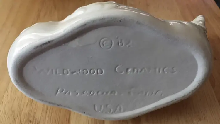 White dove planter. Marked Wildwood Ceramics Pasadena California on bottom. 1962.