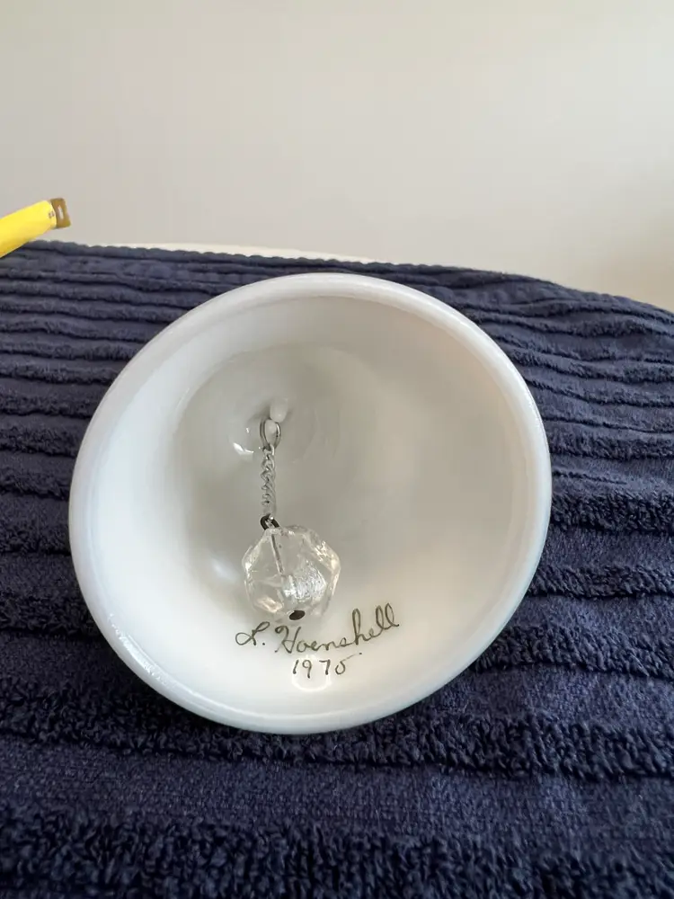 The underside is signed “L. Hornshell 1975”, making this a unique collectible piece perfect for display, gifting, or adding to a bell or vintage décor collection.