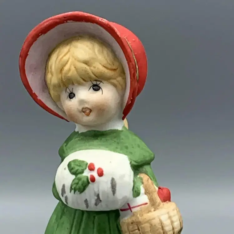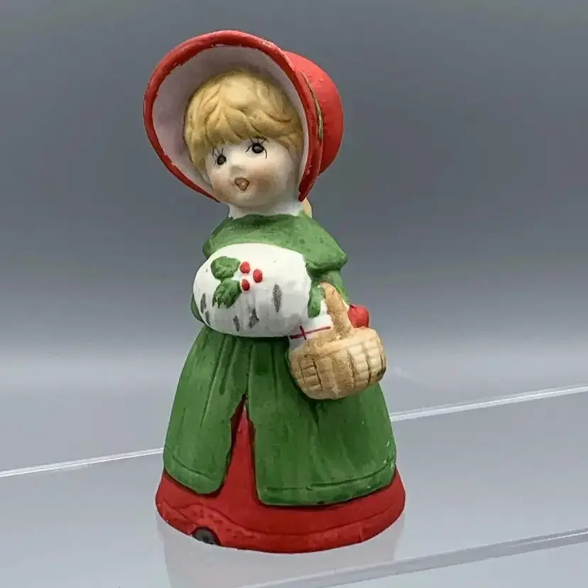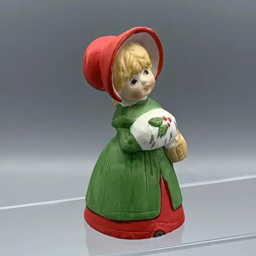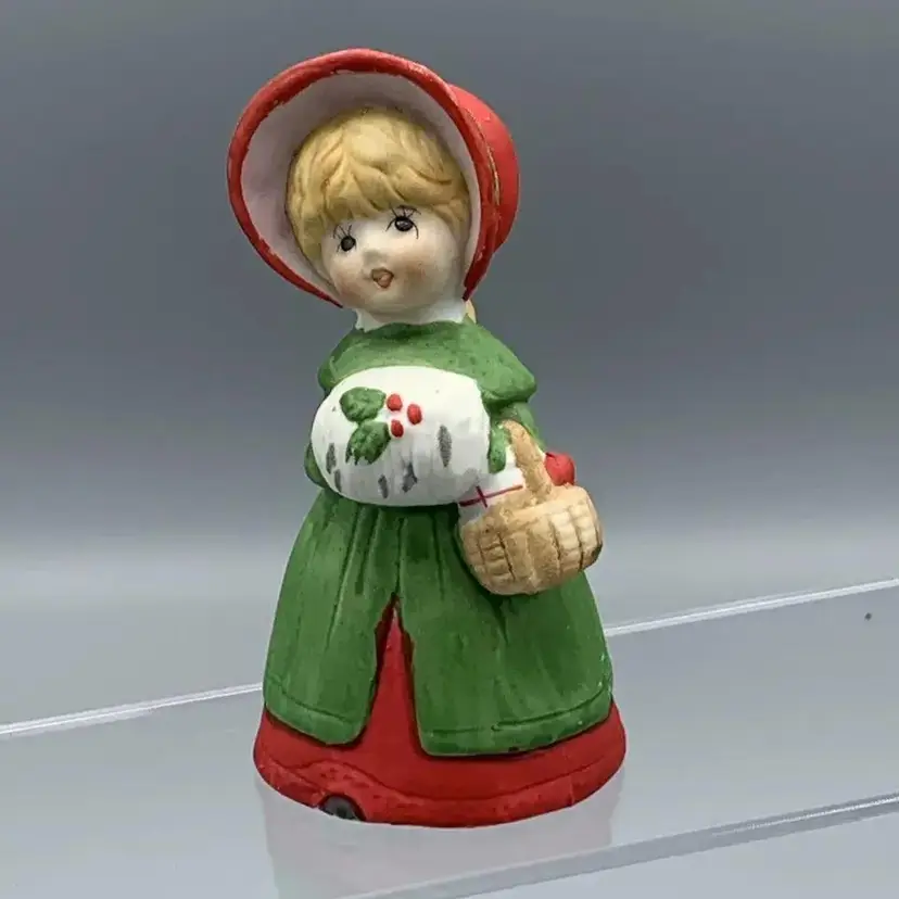 VTG 1978 Jasco Merri Bells Porcelain Bisque Christmas Caroler Girl Dinner Bell Figurine Made in Taiwan Hand Painted