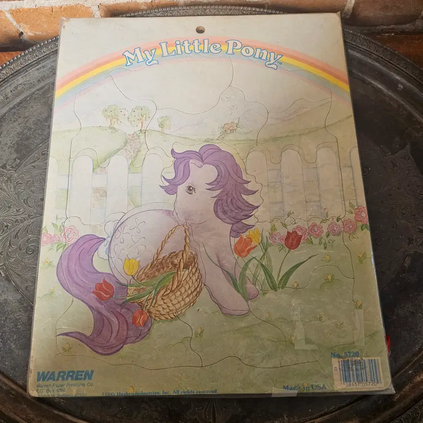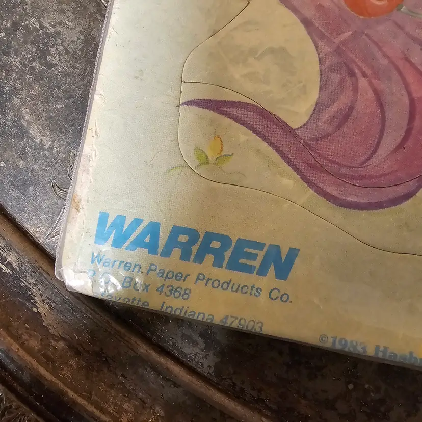 Condition: Good vintage condition. Puzzle is complete with all pieces intact. Shows light age wear, minor edge wear, and gentle surface discoloration from storage (see photos). Still bright and charming — displays beautifully!
