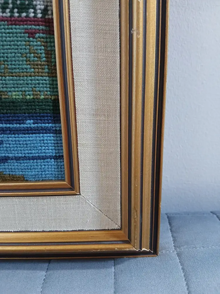 This vintage piece of needlepoint is in very good condition with no damage or wear throughout. No glass covering the needlework. Colours are rich.